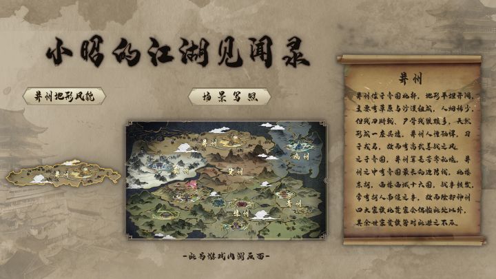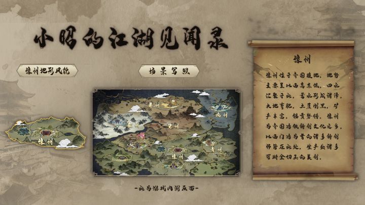 哈喽,各位涤罪师们好鸭~(●’◡’●)ノ上次在醉翁李拐的提议下,小昭决定动身前往幽州探险~一路翻山越岭,旅途中经历诸多凶险之事,小昭终于悟了~除了经脉突破、武学增长外,还需要有一把趁手的神兵利器!拿出随身携带的地图仔细寻找,最后,小昭锁定了它~听说那里是闻名齐国的铸剑之乡,数位铸剑大师居住此地,打造过无数宝剑,小昭已经迫不及待想去登门拜访求剑啦~快随前线小昭一起前往旅途的第三站——豫州