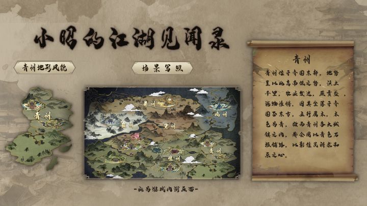 涤罪师们好呀=≡Σ(つ•̀ 3 •́)つ最近小昭可是在勤修苦练呢,可经脉却怎么都突破不了......左思右想了好久还是决心出去江湖冒险一番,以期望自己的经脉升级可以在旅途中有所突破。在被醉翁李拐念叨了超久,依依不舍的送别后,几经辗转终于来到了探险之旅第一站——青州~早就从醉翁李拐口中听闻齐国的青州大名,可这青州究竟是什么样子呢?快来随小昭一起看看叭 (*^▽^*)。 ○青州○青州处于齐