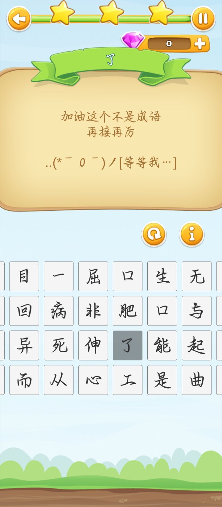 这个很不错哦,特别推荐,可以锻炼我们的知识而且对我们的学习也是有很大的帮助,原本记不住的成语多玩玩这个,熟悉了就可以记住了