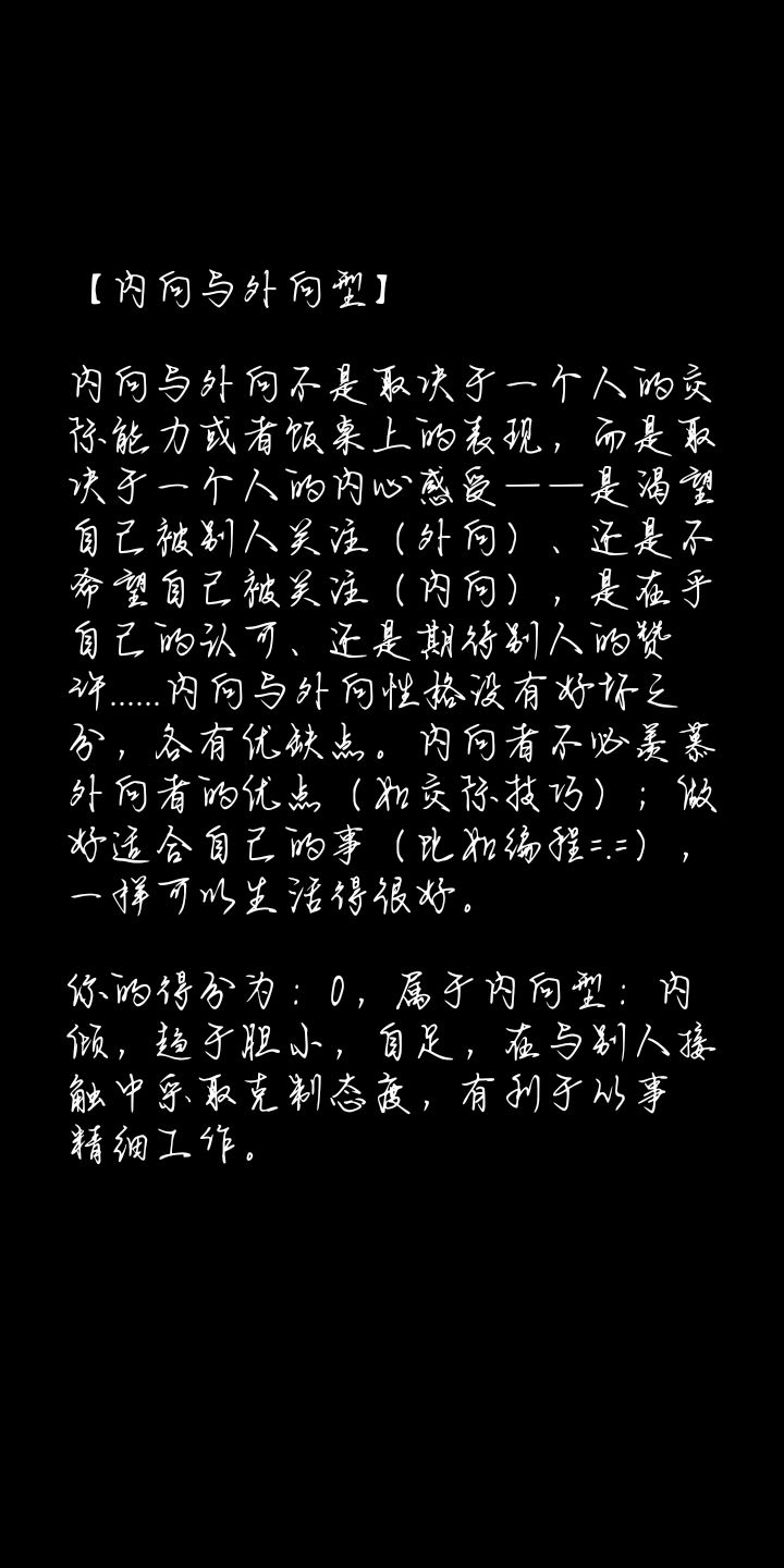 这个测试对我来说还是比较准的,就是做起来比较费时间,结果还可以再详细一点。