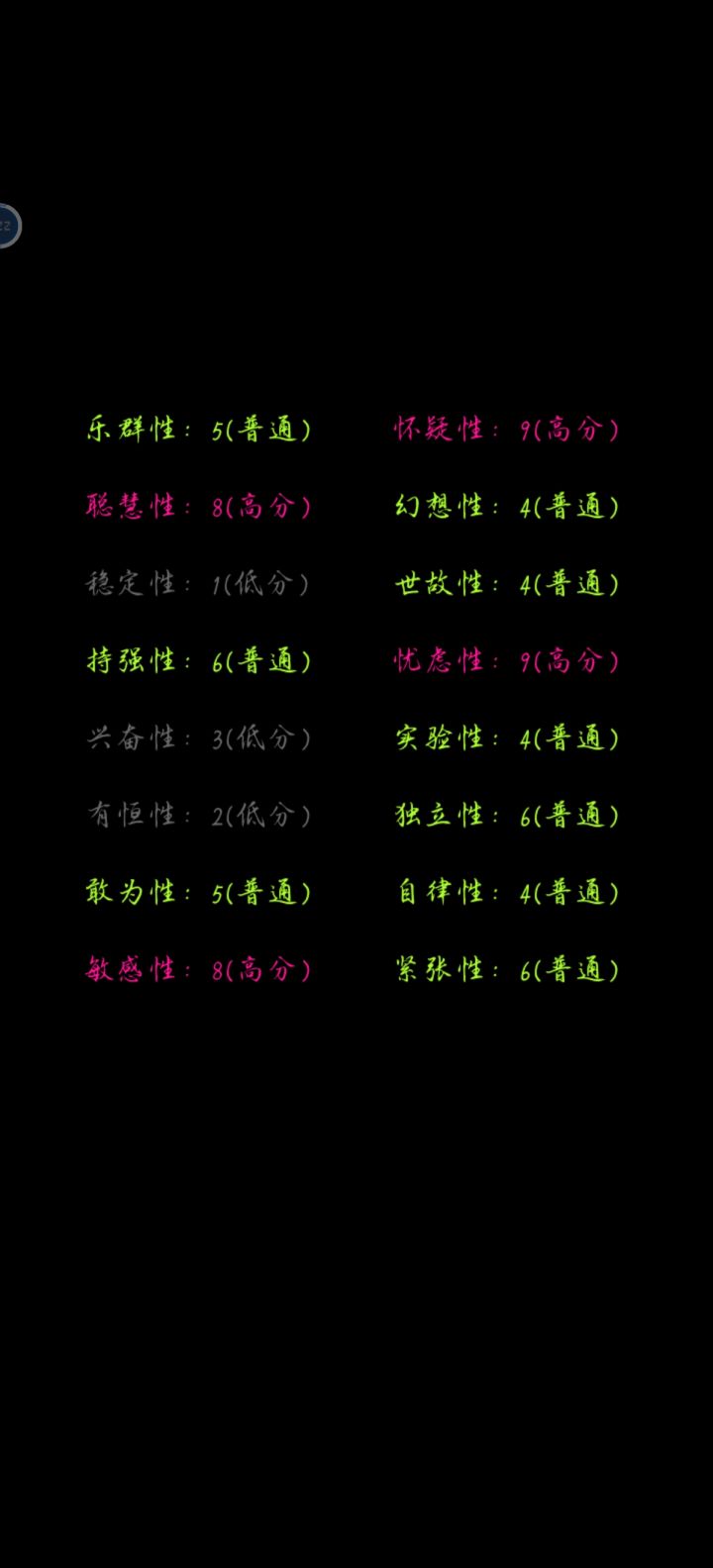 一开始感觉很有悬念,但是玩到后来也发现没有什么就是很普通的几个测试,在别的软件也都有做过,没有很准吧,但是也可以作为基础的去参考一下吧。