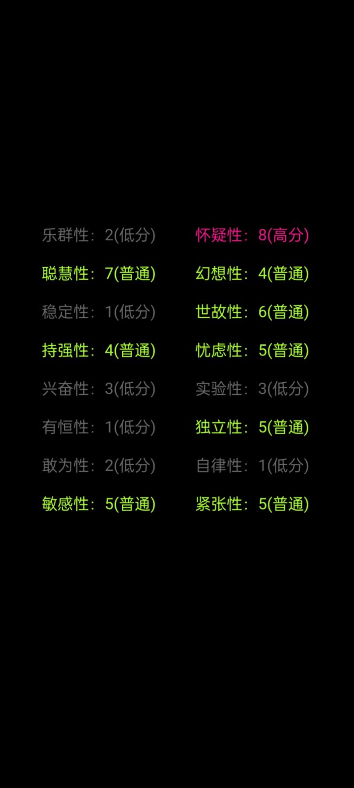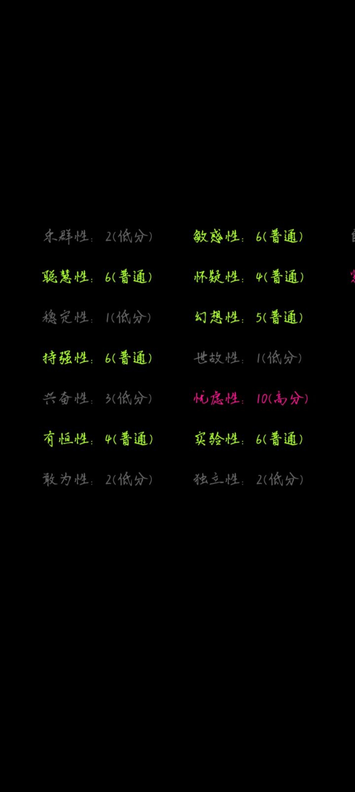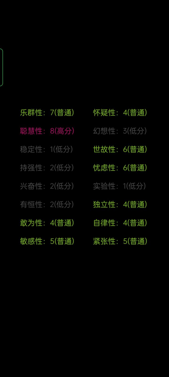 聪慧性比较高,但是稳定性坚持性和尝试新东西的积极性不高😅
