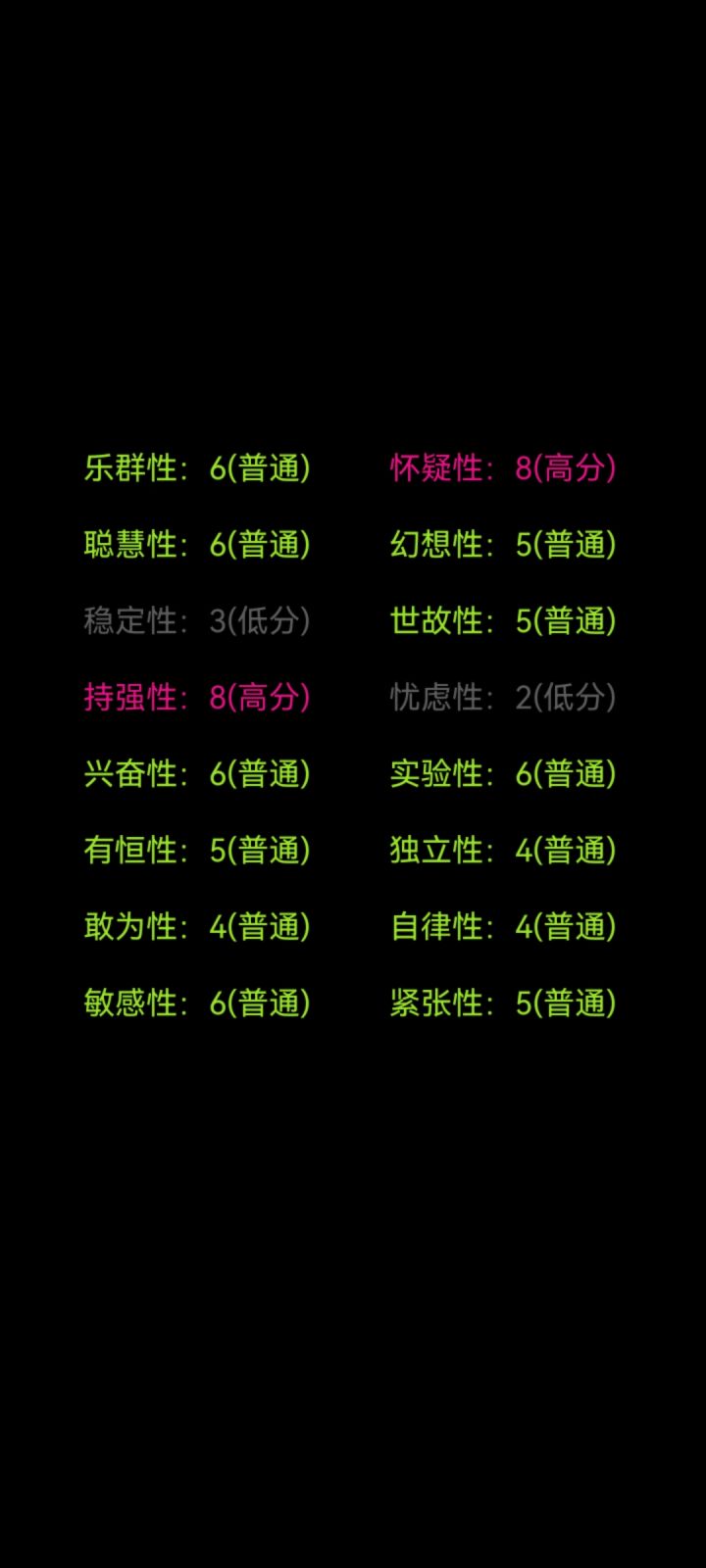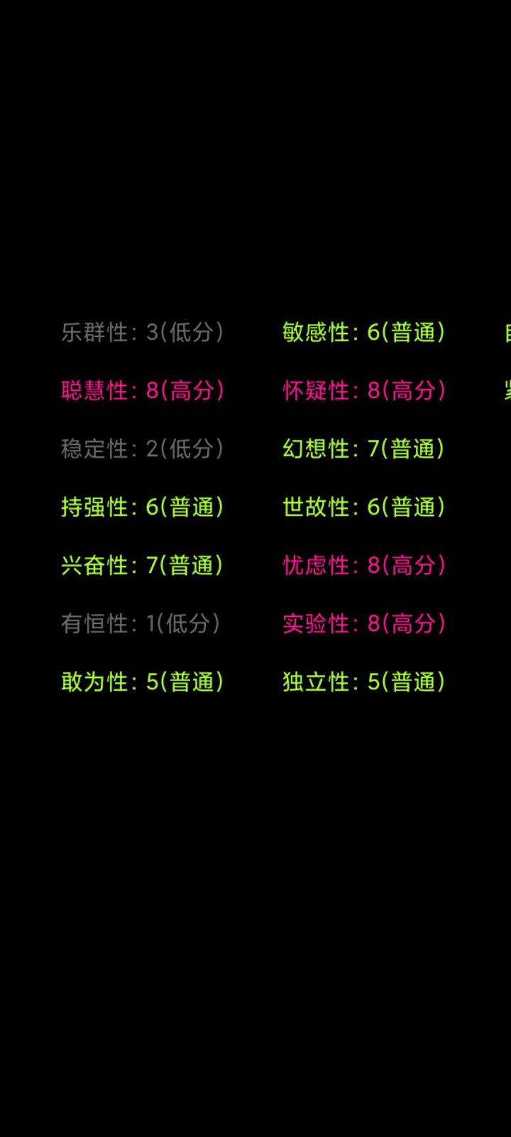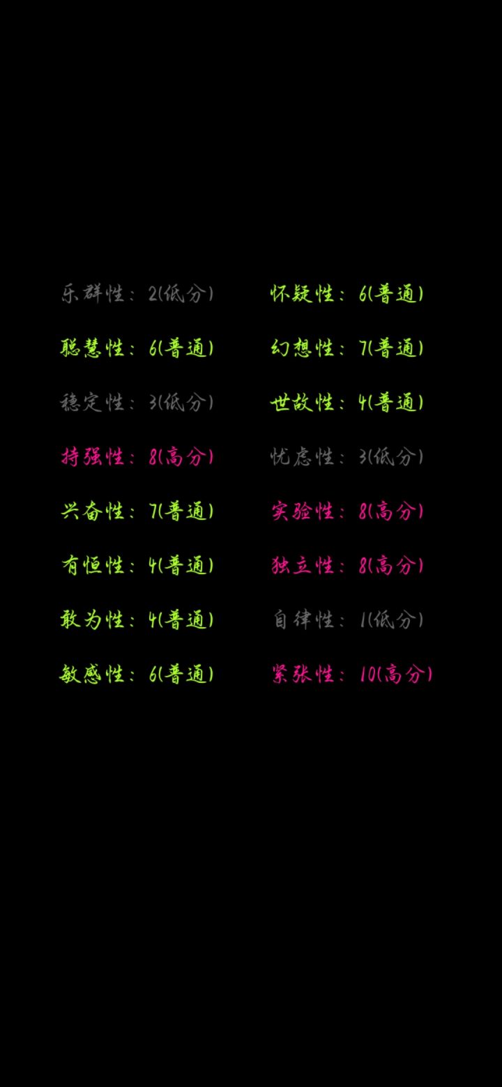除了聪慧不确定,其他挺准的