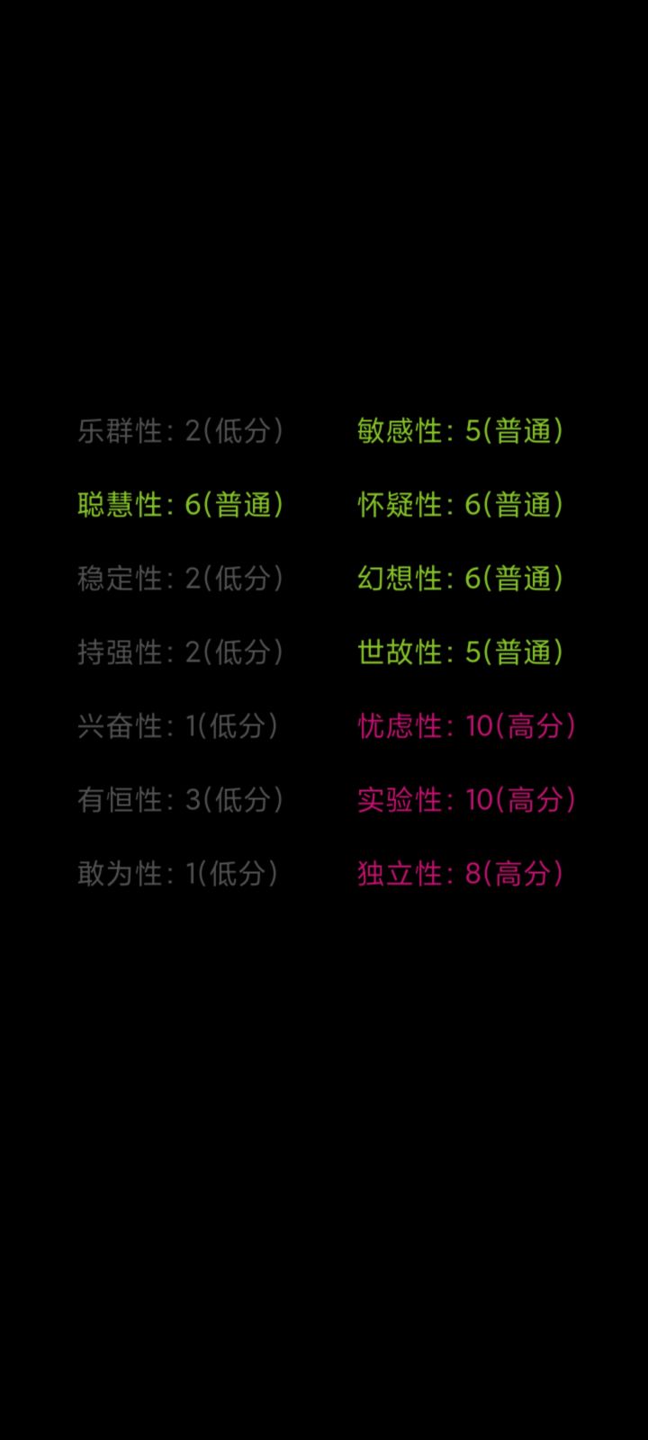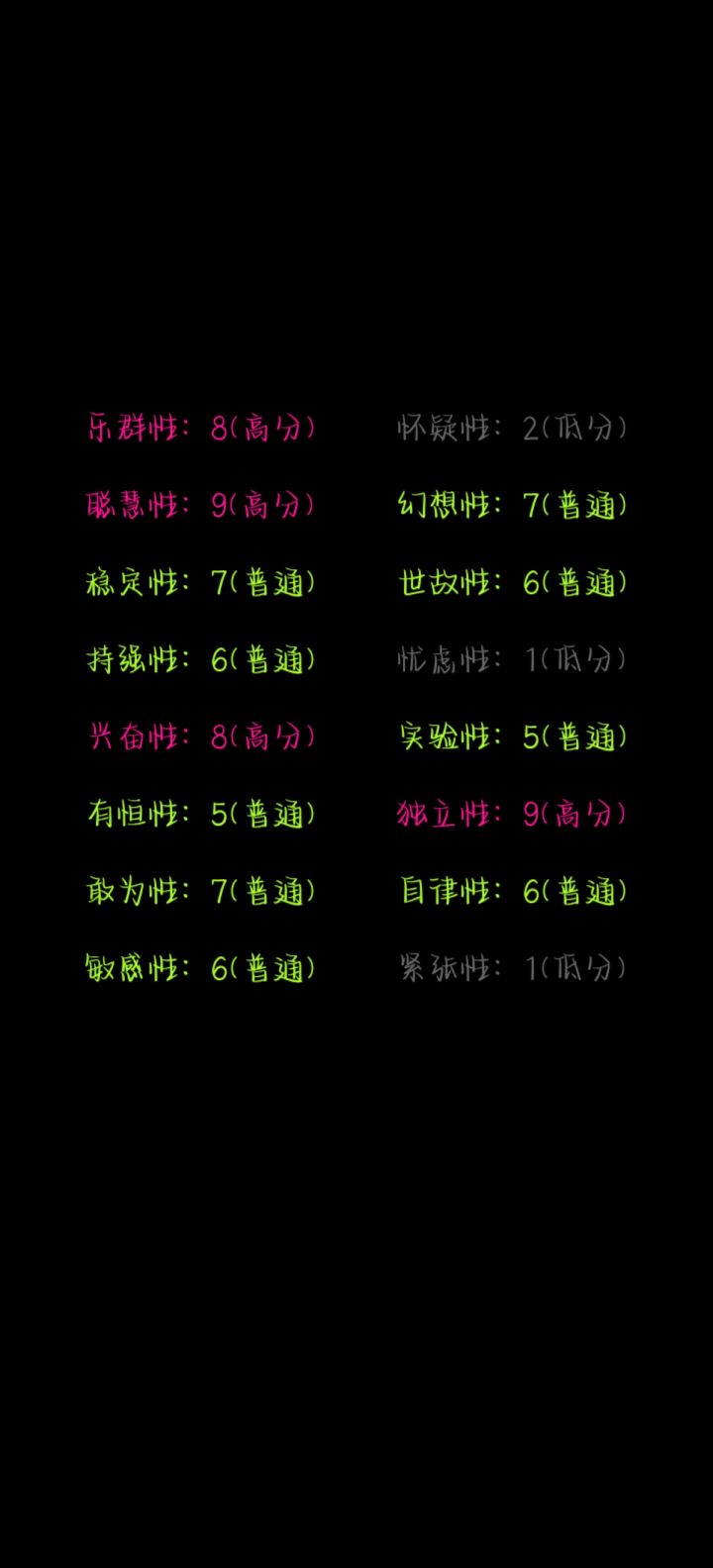 很有意思跟很早之前测的不一样果然人是会随时间改变的。