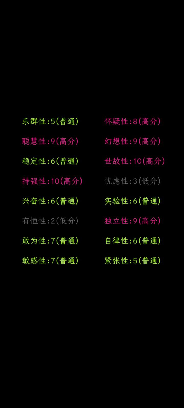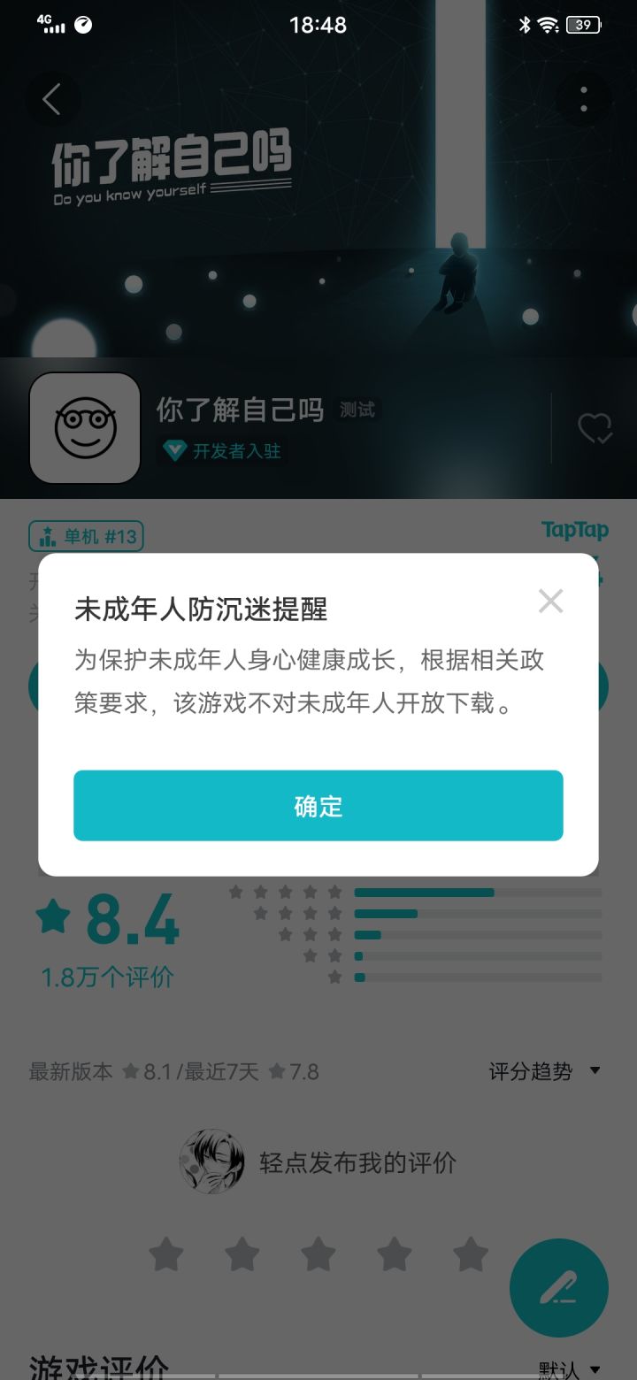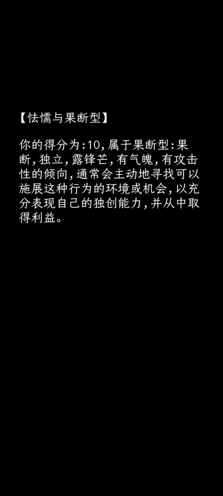 虽然是一款心理问卷为基础的游戏但是多多少少想提一点小建议让它的“游戏性”能再强点1:BGM的问题,只有开头和结尾时会出现BGM(我不知道是不是刻意这样设计)但是就个人感觉来讲如果能在过程中加入BGM会好点。2:可以尝试下加入背景插画之类的东西3:可以尝试下加入点动画效果,我明白单纯的渐入渐出是为了营造一种氛围,但多多少少会有点单调,在结尾统计处可以试试尝试下不同的表现形式和动画效果。暂时只能想到这些第一次写这种东西只是想把自己的感受表达一下如果有不同的意见也欢迎交流。