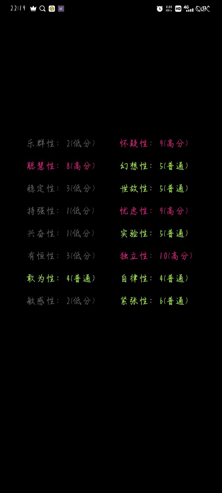 果断,感情用事,内向。感情我是那种很容易过激杀人的人啊🤔