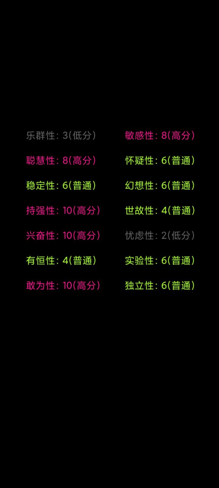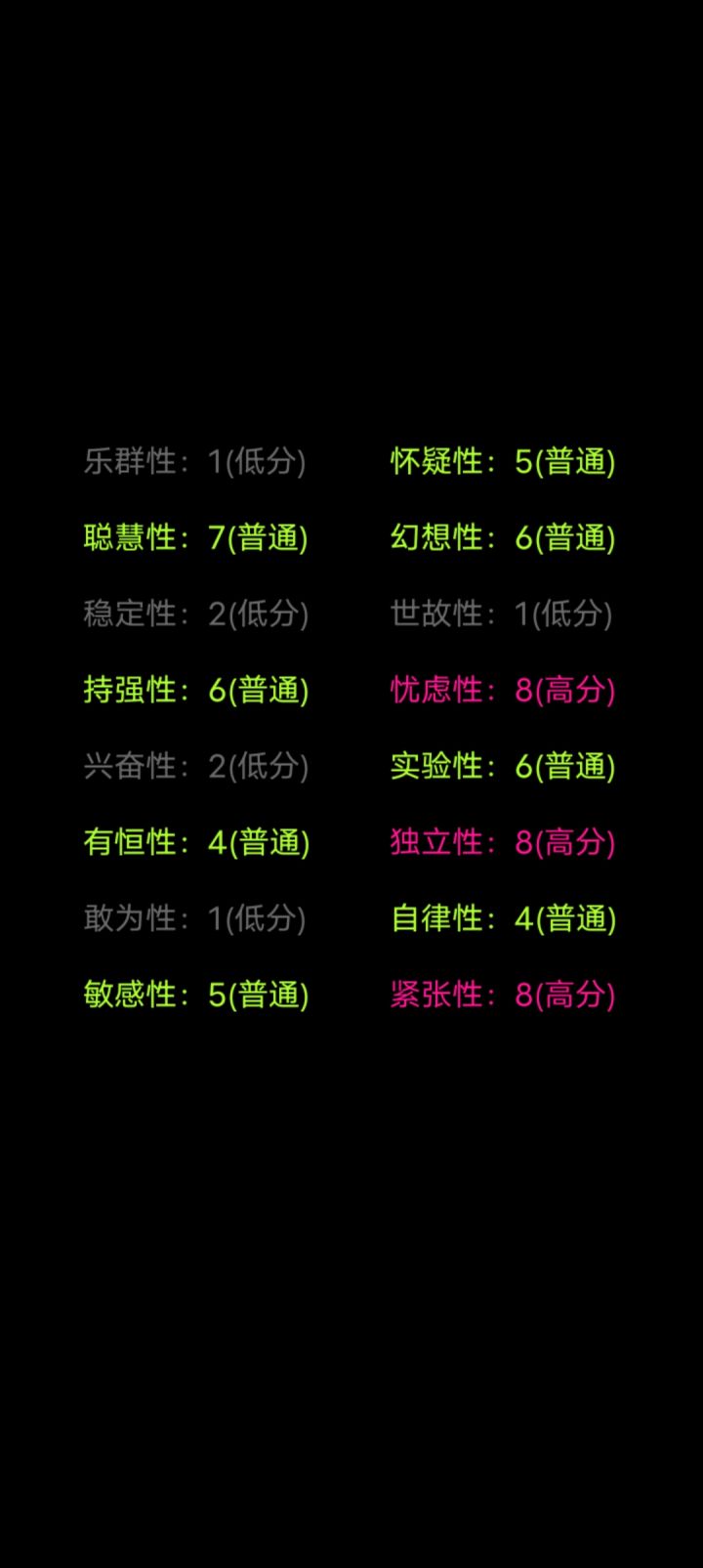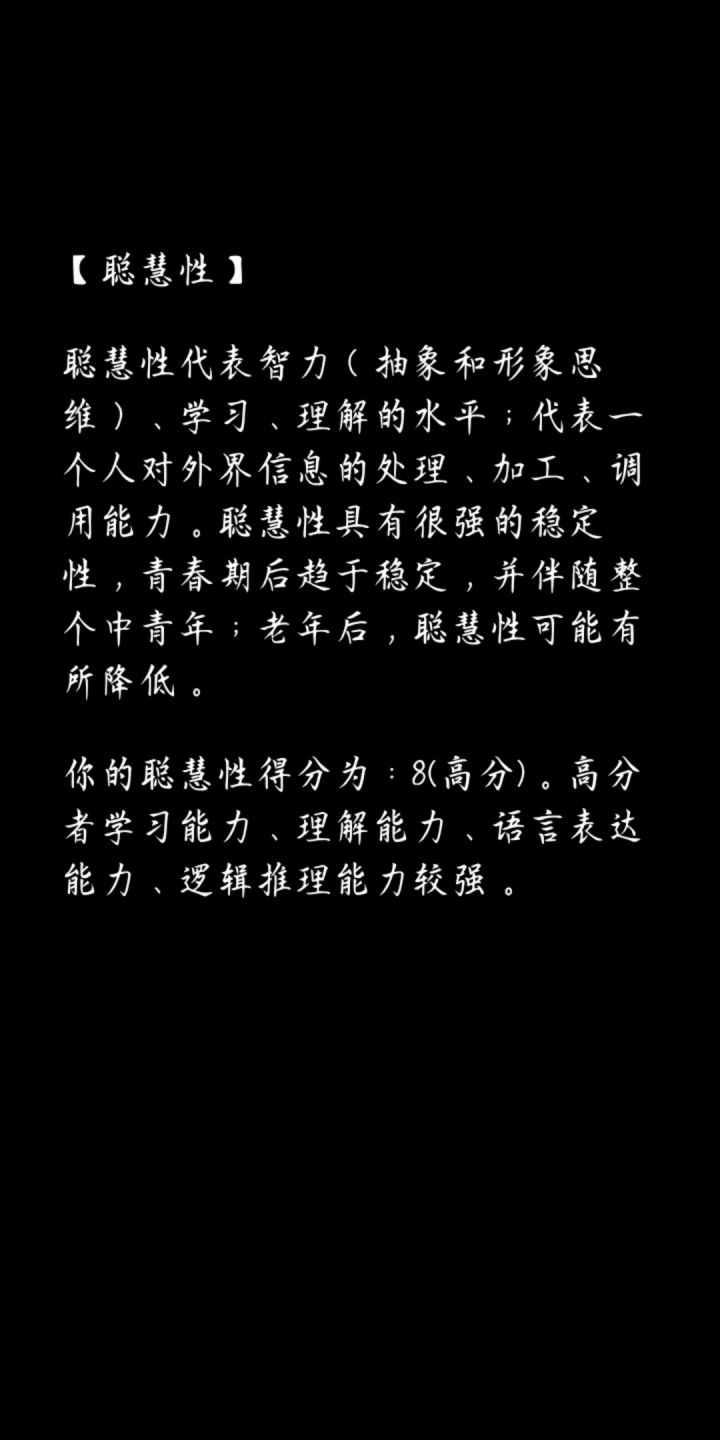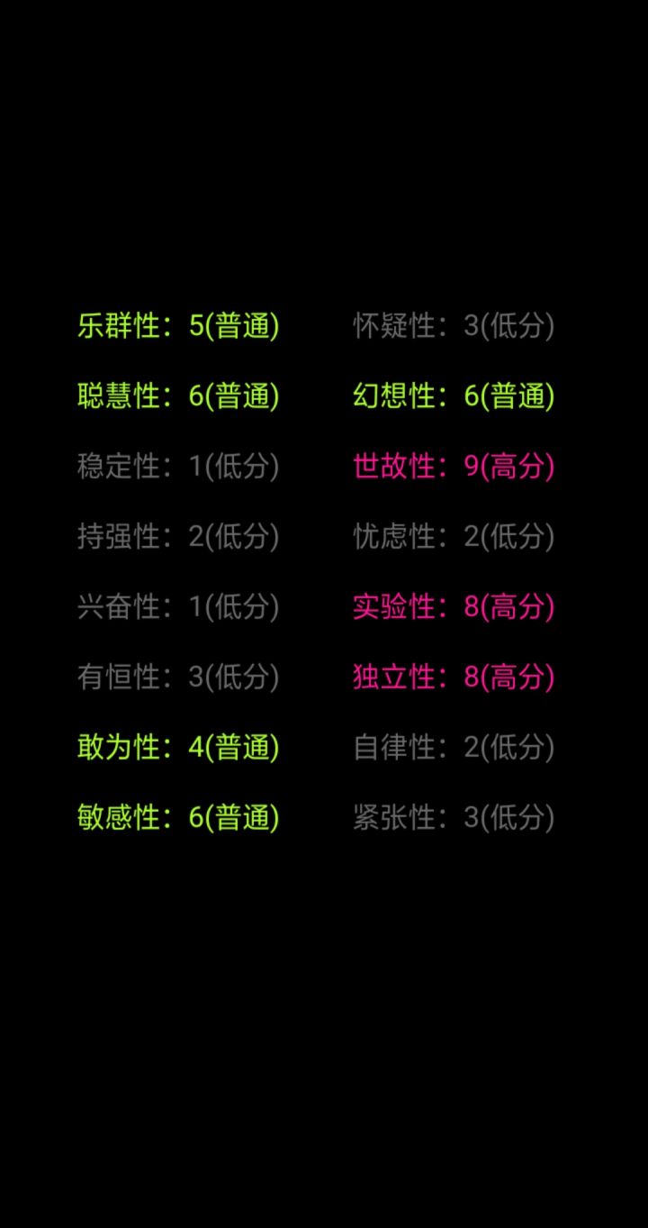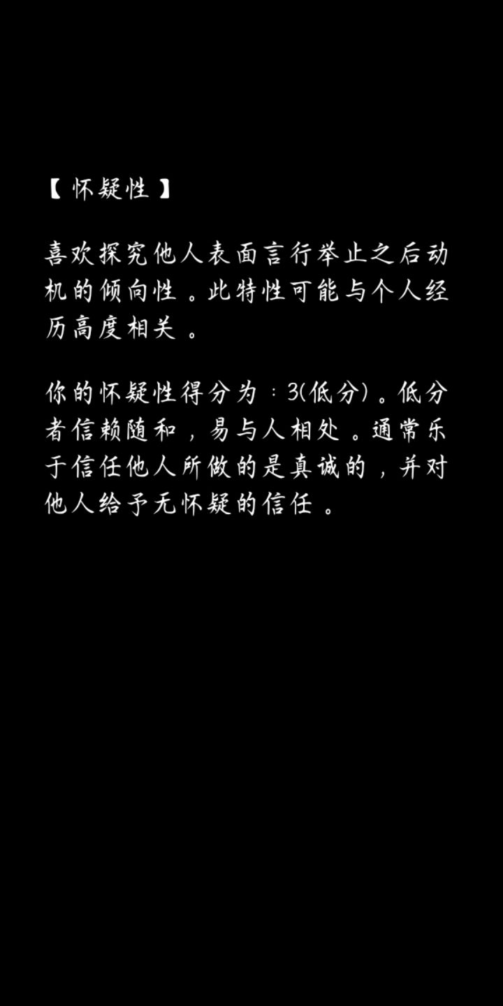 答了一百多个题,断断续续的,今天终于看到了结果,怎么说呢,这个游戏非常的用心,个人觉得还不错,挺真实的。😉😉