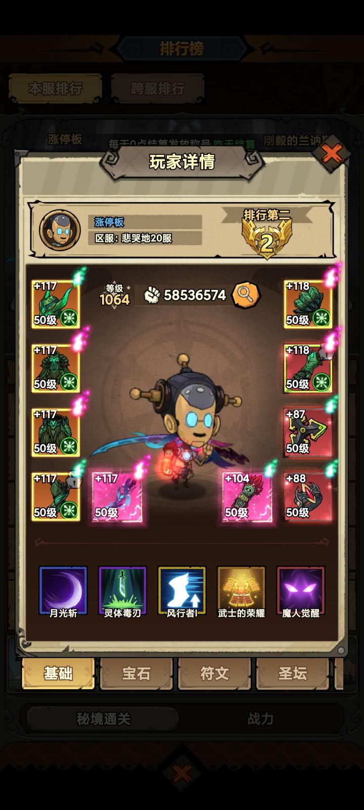 给各位朋友一个建议吧,这游戏就当单机消磨时间,充不冲其实都一样,因为你永远当不了榜一。 如图是我们区的榜一,我因为最近比较闲,每天至少有4个小时断断续续肝,从之前的不上榜现在稳当榜一。一分没充,主打一个游戏体验!但是!榜一也是一分没充!看装备,时装,宠物星级可以看出来。如图,我战力已经比榜一高了,前两天其实等级还比他高大概100级, 但是已经打到深渊后,经验和挂机,金币奖励是一样的情况下,等级