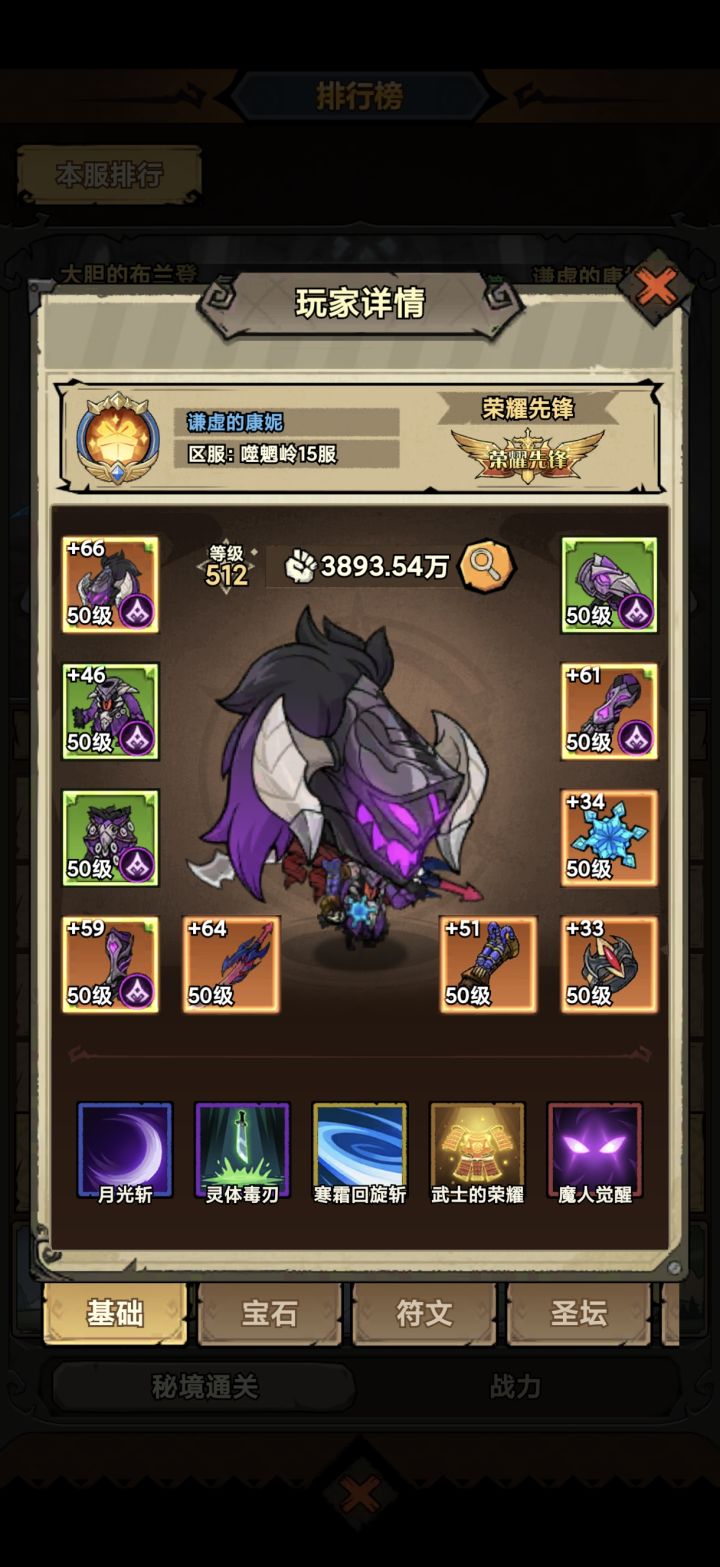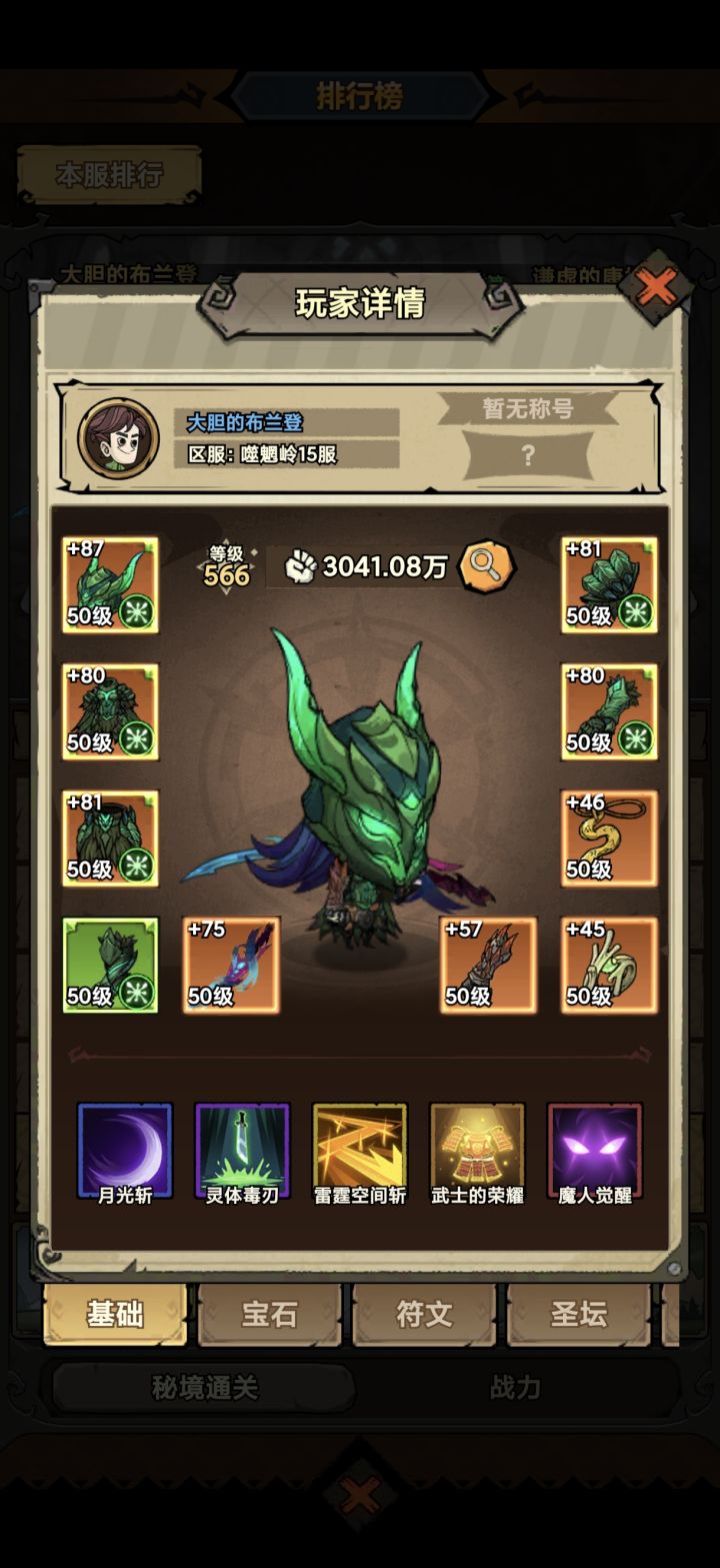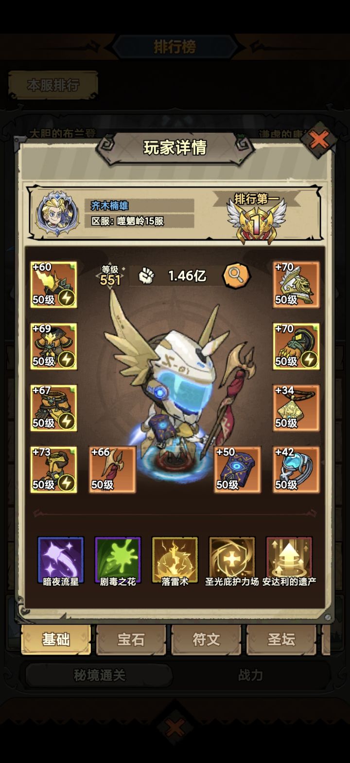 第一战力一亿多第二3000万第三3000多万战力我是第三 充了小2000宝宝符文都比第一名好想不明白卸载游戏了