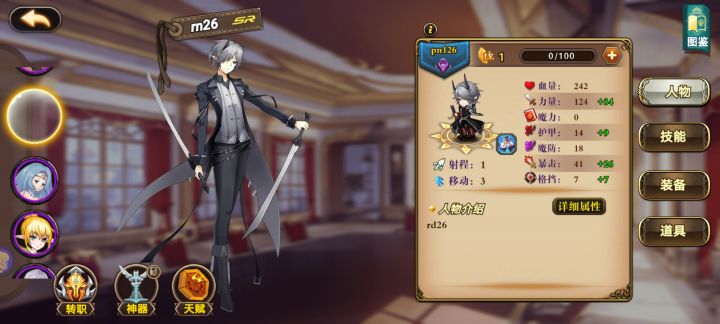 打了两天,手里全是n卡r卡,开始还以为十连能抽很多角色,结果就抽到一张精灵弓箭手,不过陷阱超级强,打到叛军首领那了,难度曲线实在离谱,敌人远程法师和弓箭手伤害爆炸,一下一个脆皮还有aoe,游戏做的挺好玩的。就是想吐槽一下游戏难度挺离谱的,还有初始sr魔族王子的剑士职业真的好菜,跑的慢还脆,初始的远攻剑气斩被删了,技能魔爆斩实际暴击只增加6%真的让人无语啊我情愿用魔爆斩换剑气斩,好歹