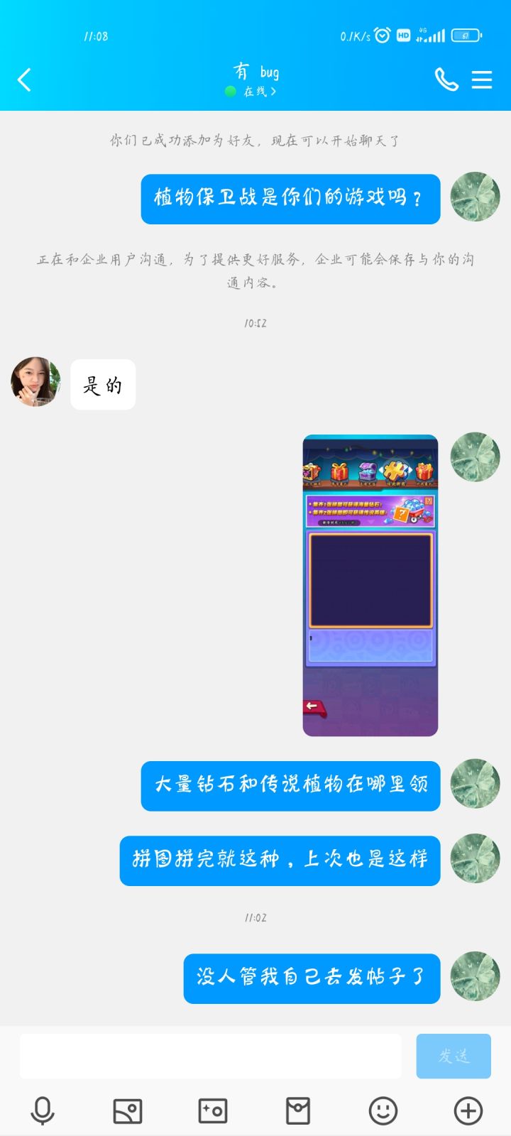 从开始内测玩到现在,我一直搞不懂,植物大战僵尸题材的游戏应该体验很好才对。到你游就画风突变,节假日没活动,也没邮件,奖励扣扣搜搜的,各种 bug 卡得要死。你自己的游戏,氪钱领传说植物,钱我是氪了,奖励被吞了,找你们客服,一直装死,我搞不懂,就这么个问题,跟我讲技术在处理,处理十多天还在处理,咋滴,你们技术是幼儿园招的吗?然后,一找客服,客服就开始装死,咋滴,优秀啊,玩这么多游戏,你游是真的恶心到