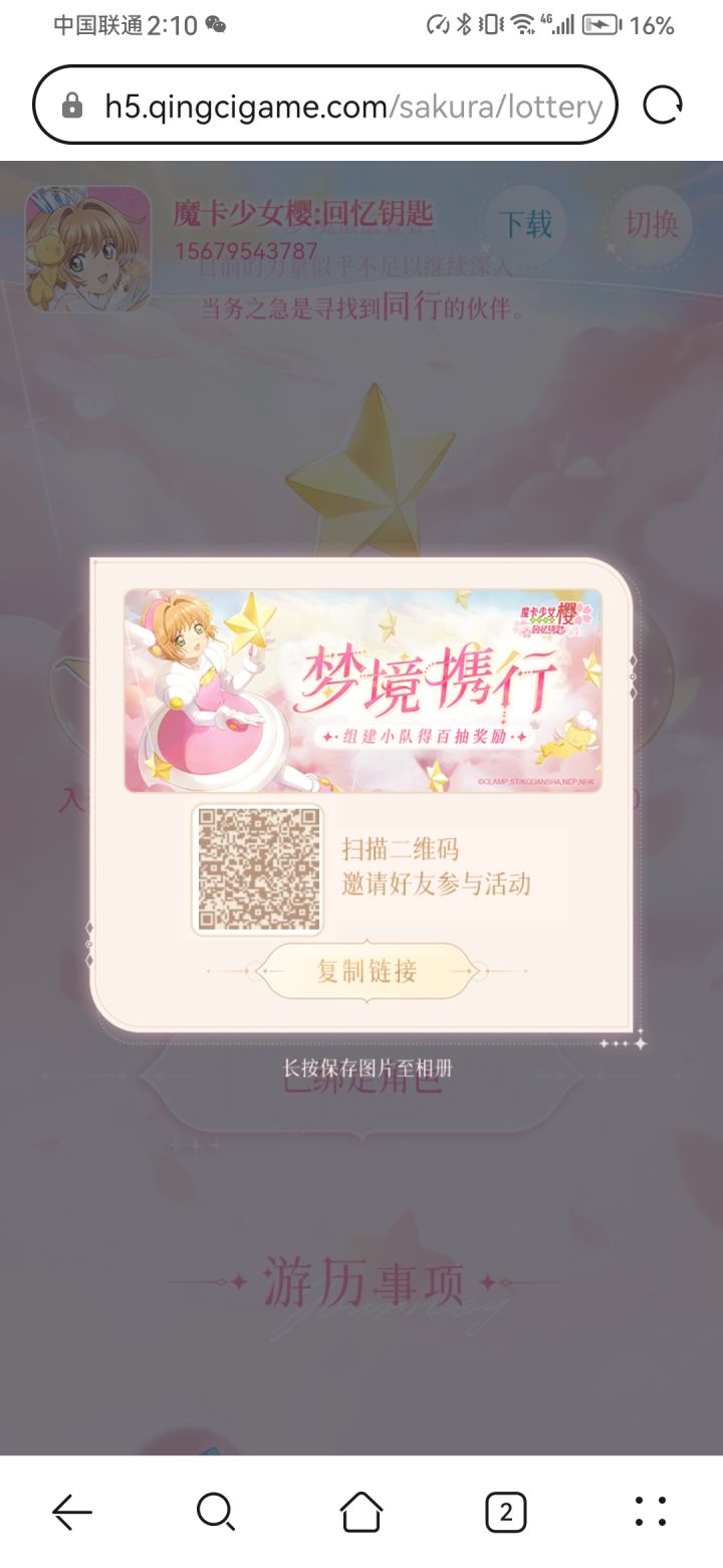 就差一个人了。求组队《魔卡少女樱:回忆钥匙》现已正式上线!2665邀请你加入小队,一同探索梦境解锁百抽福利:https://h5.qingcigame.com/sakura/lottery/help7eymm6ymh5f?friend_id=114674