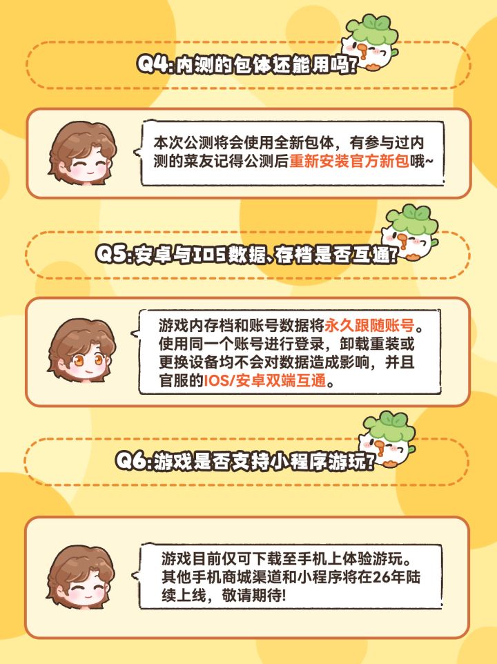 亲爱的菜友们:🔔《菜鸡梦想家》将于12月27日15:30公开测试⭐小菜鸡整理了大家近期比较关心的问题和解答💡大家可以将其他的疑问和建议发在评论~📖我们会持续关注并整理大家的反馈,不断优化大家在菜菜小镇的生活体验哒!✨另外:近期,有不明渠道的兑换码流出,请大家认准《菜鸡梦想家》官方账号(我们之后也会发布兑换码省流一览图的),不要轻信陌生信息,以免受骗!#菜鸡梦想家 #小菜鸡ruky #发