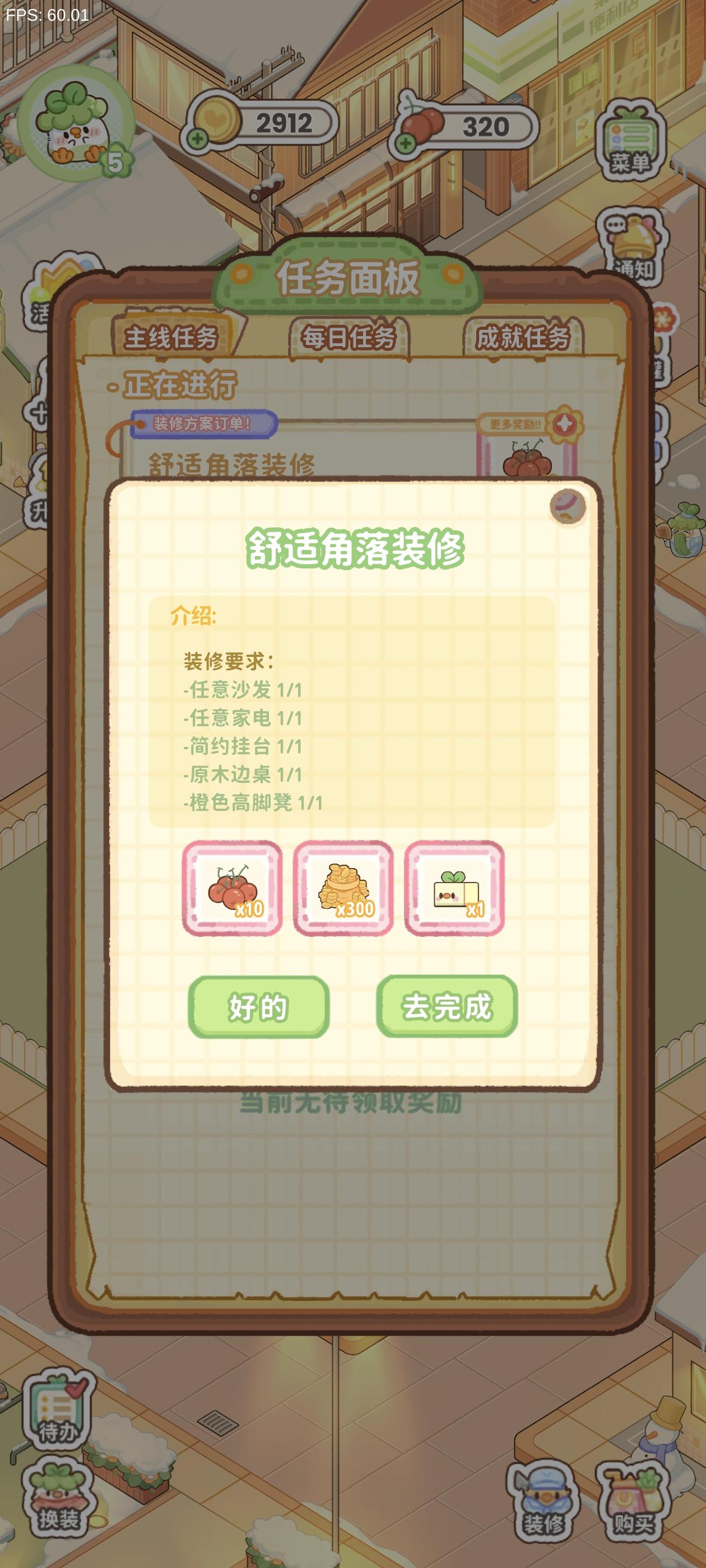 任务完成后没反应 还有任务《漂泊小船》购买摆放后也是不能完成任务 直接卡在这不能玩了#菜鸡梦想家