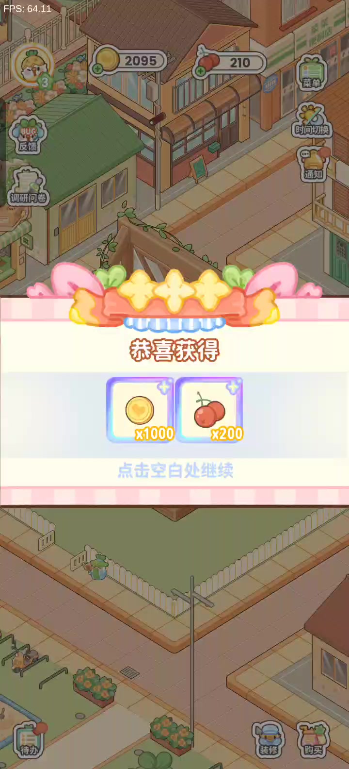 做买家具升三级的任务,完成的时候在关闭购买界面的提示的时候卡了一下,然后弹出领取界面就完全卡住了