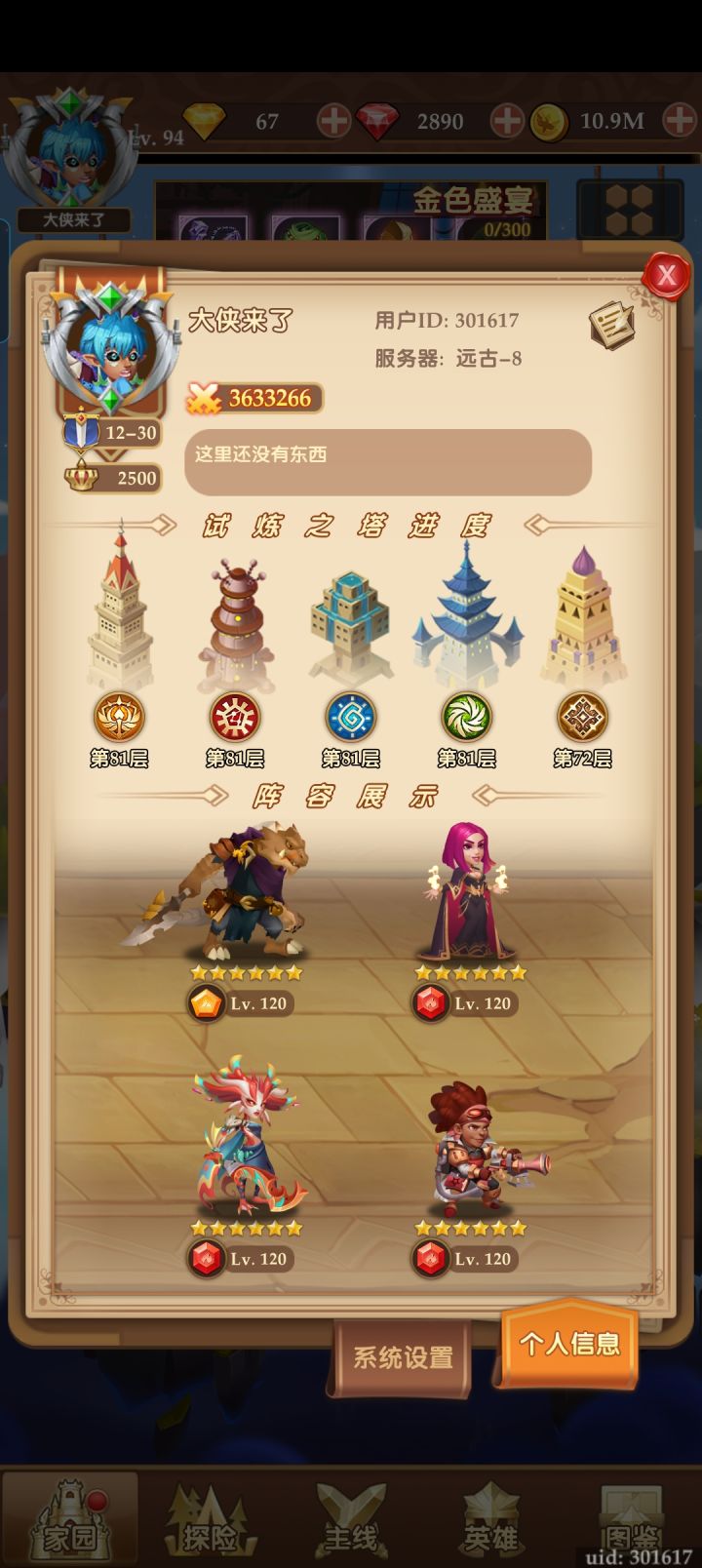 ID:11417 战力不强求 活跃就行树妖全满骑士5万全是活跃玩家。