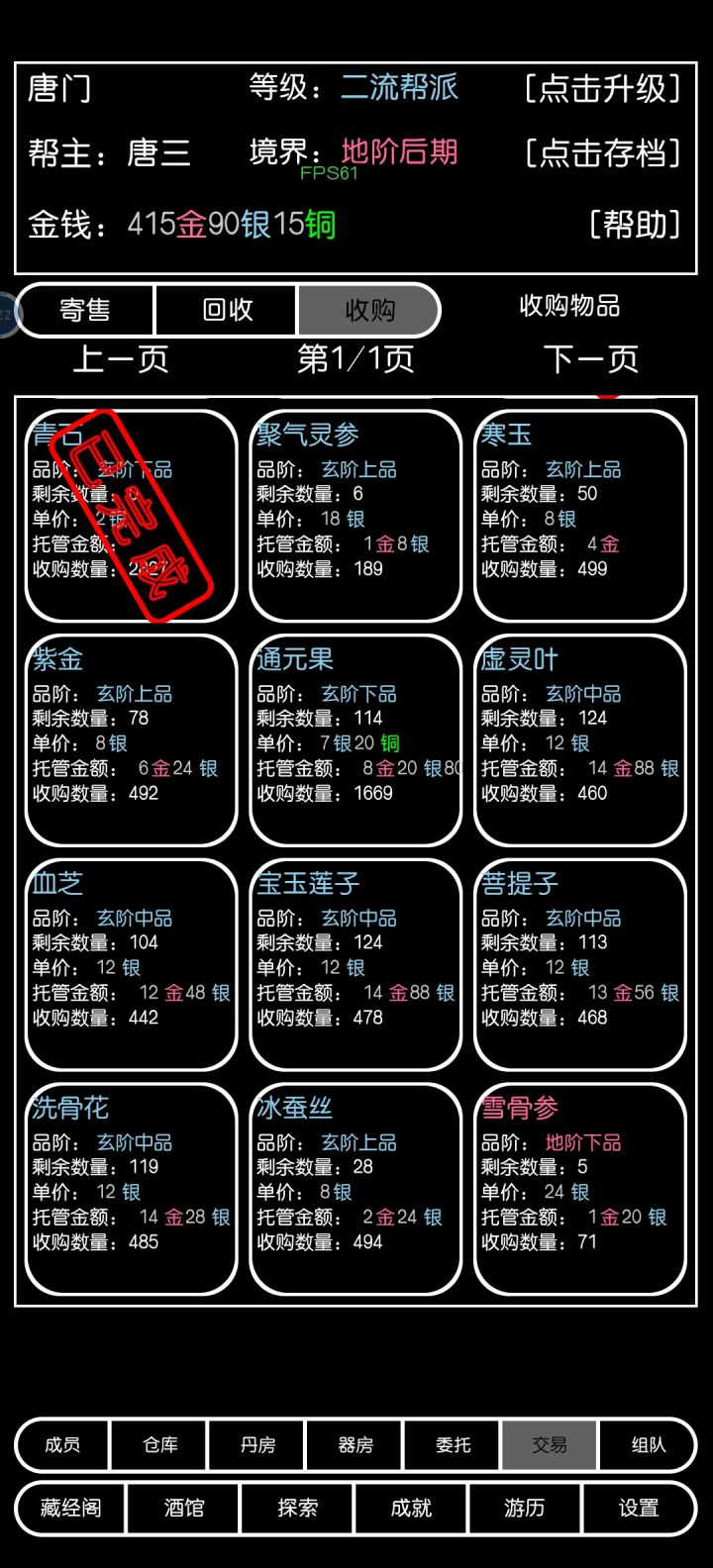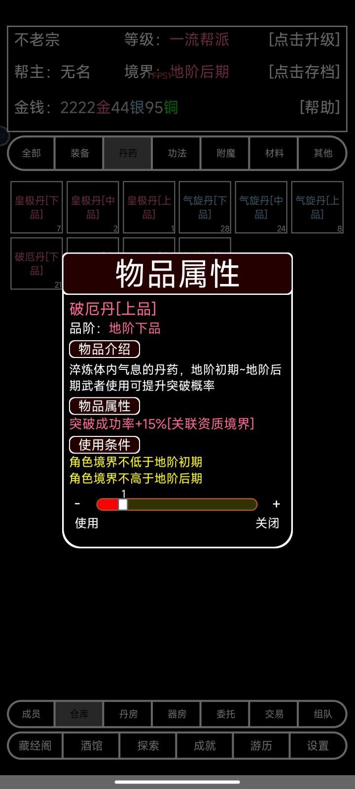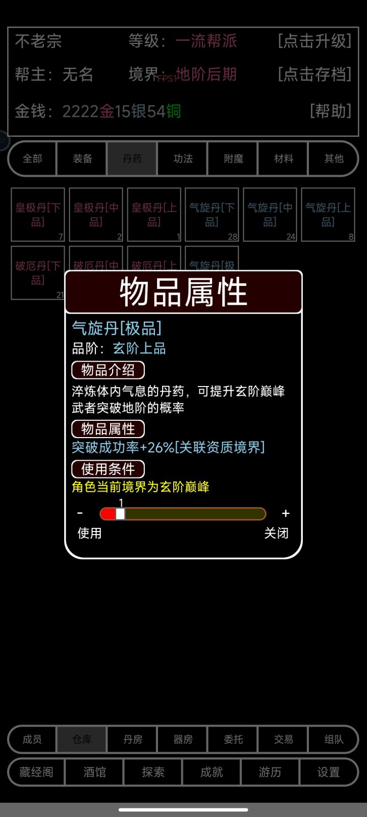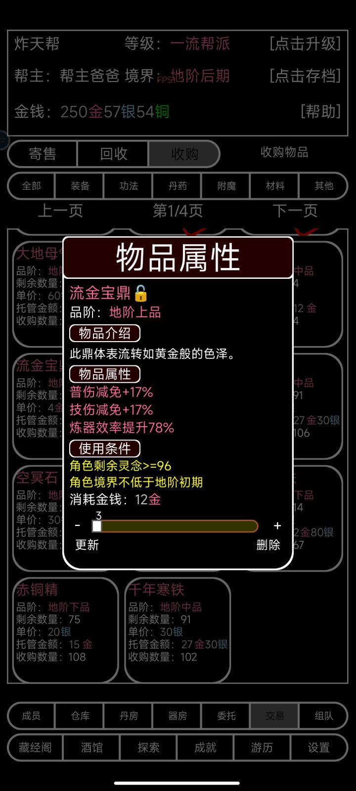 如图这两种丹药,去交易所大量收购这两种丹药的材料,然后练成之后再在交易所最大金额出售,回笼资金,重复操作,nbc们会自己购买服用的,当然也可以手动赠送,上中下极品丹药每个能服用一次,四个品级的丹药全部服用的话升级的几率还是可以的