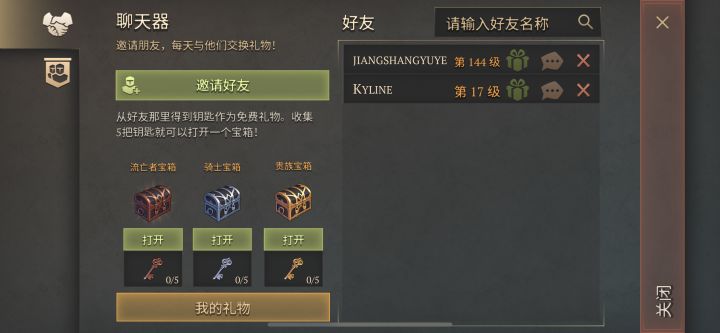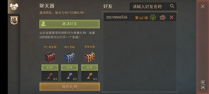 加好友我145级送贵族宝箱钥匙互送钥匙