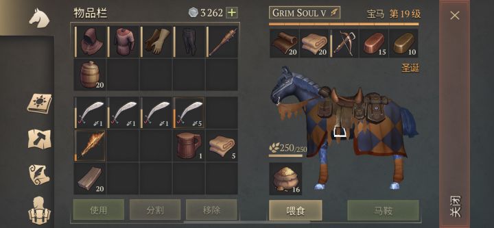 这是带回来的东西,马背上5组木头没有截图消耗了22个燕麦,nice