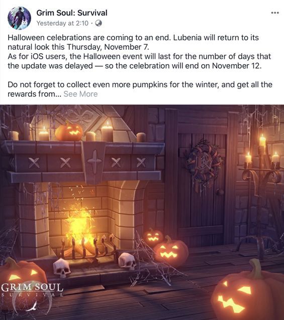 我长话短说哈,万圣节活动于安卓玩家在今日(也就是11月7日)截止,而由于之前更新问题,iOS玩家截止日期推迟到11月12日:)