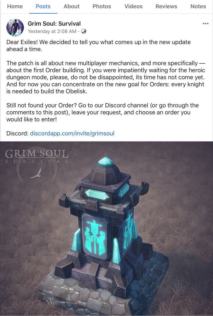 亲爱的流亡者!我们决定提前告诉你最新更新的内容。这个补丁主要是关于新的多人游戏机制,更确切地说是有关于一阶方尖碑的建造。如果你等待英雄地下城模式有点不耐烦,请不要失望,它会来的。现在你可以专注于骑士团的新目标:每一位骑士需要建造的方尖碑。还没找到骑士团?那就赶紧去我们的官方“discord channel”留下你的请求吧,选择你想要加入的骑士团!备注:官方提及的“discord channel”