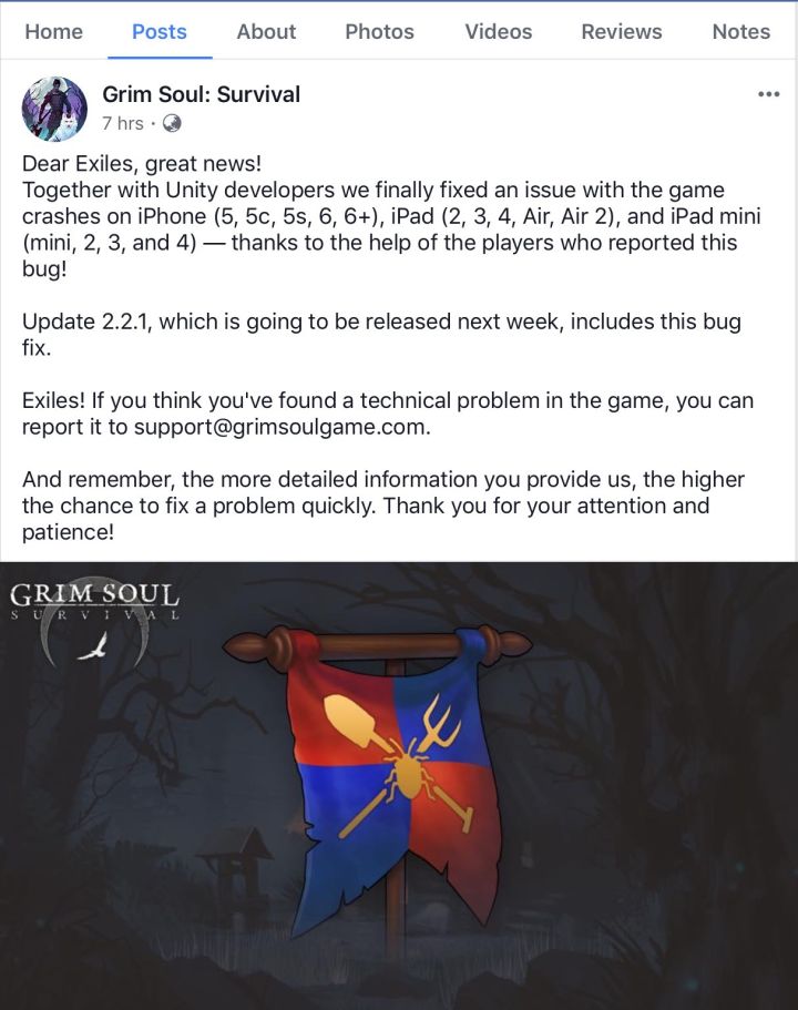 亲爱的流亡者,好消息!在与Unity开发者一起共同努力下,我们最终解决了一个游戏在设备iphone (5,5c, 5s, 6,6 +), ipad(2,3,4, Air, Air 2)以及ipad mini(mini, 2, 3,和4)上崩溃的问题-感谢那些向我们反馈bug的玩家以及你们提供的帮助。版本2.2.1的更新将在下周发布。流亡者!如果你觉得你已经发现了游戏中的技术性问题,那么你可以