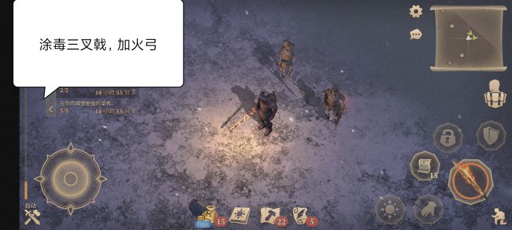 带30攻击武器一把,60攻击武器或者更高一把,元素伤害武器(打普通难度的沼泽怪或者冰火怪可以获得)一把,2级套,4级甲一件(衣服),半组肉干或者一组,蛇形弯剑一把开局快速把箱子开了,然后用蛇剑背刺骑士和恐狼和女巫,用30攻击武器背刺小怪,有多个小怪就出图反复背刺,遇到亵渎者就用元素武器打,换上4级甲加吃肉干怪全部清完,把背包全部东西放到箱子里面,开自动,捡20个石头,两个木头做一个石斧,砍