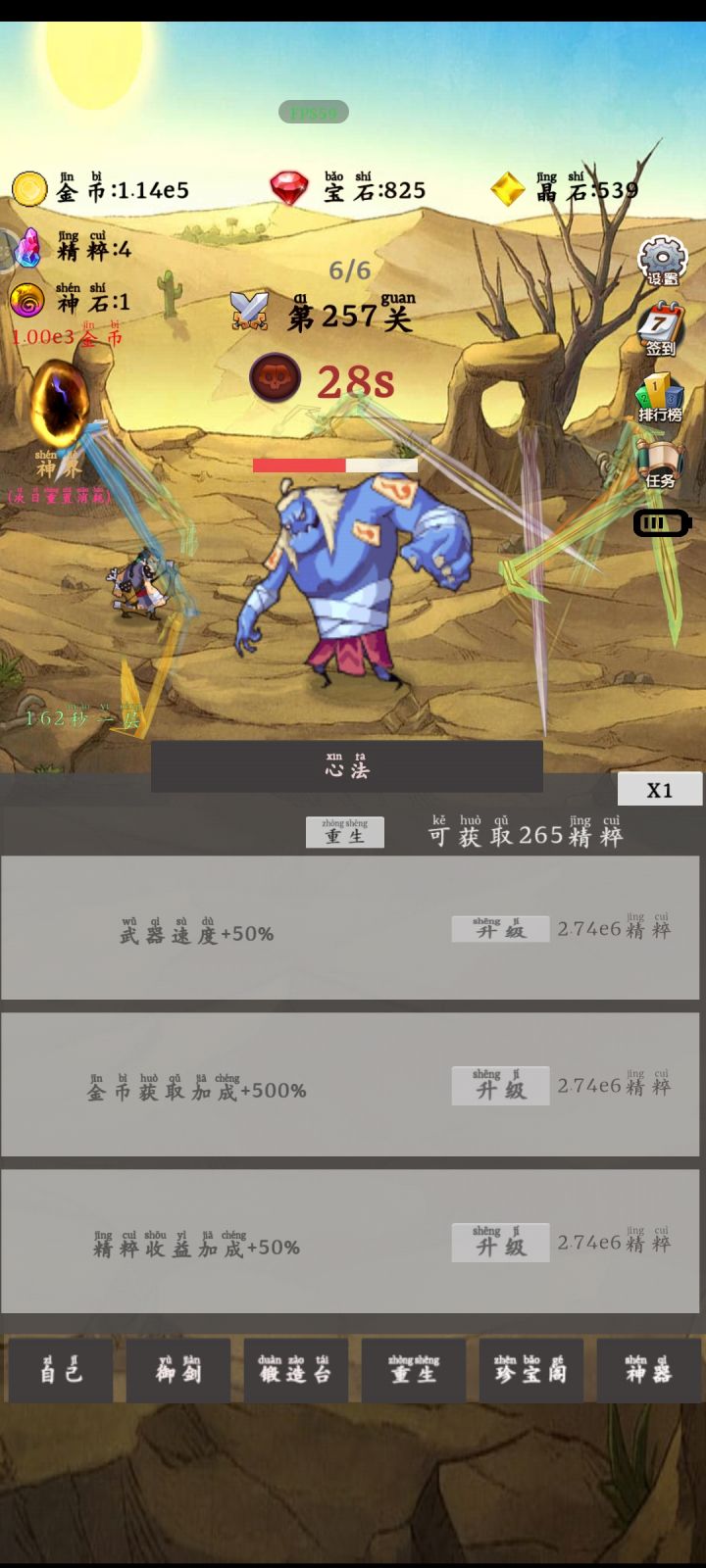 作者能不能加一个挑战Boos的按钮啊,每次卡关都有30秒没有收益,忍完那30秒后就5波小怪,金币收益效率太低了