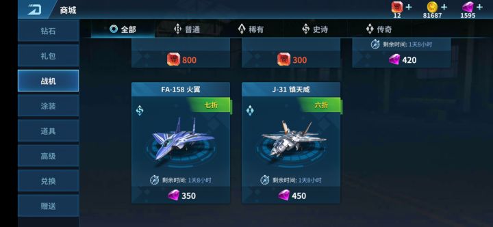 最好不要进抽奖那个坑,做一下活动任务,攒一下钻石,看一下商场有没有刷新的传奇战机