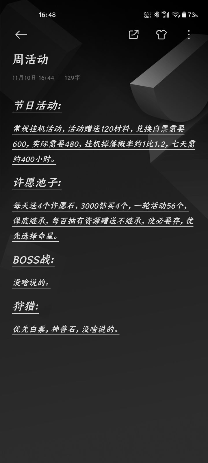 抽卡。自己想好要玩什么阵容抽哪几个英雄。然后关注先锋群提前知道哪几个神格试炼会来,存票狂抽,前期抽个本体返十个票,一星二星三星四星五星都有返,等错过了下次出来的时候就是一个票了。另外抽卡神格试炼心愿召唤次数是保留的,尽管梭哈。还有召唤活动,送的奖励很不错。id:741933579d7749a3a896ac577ae5e3c4