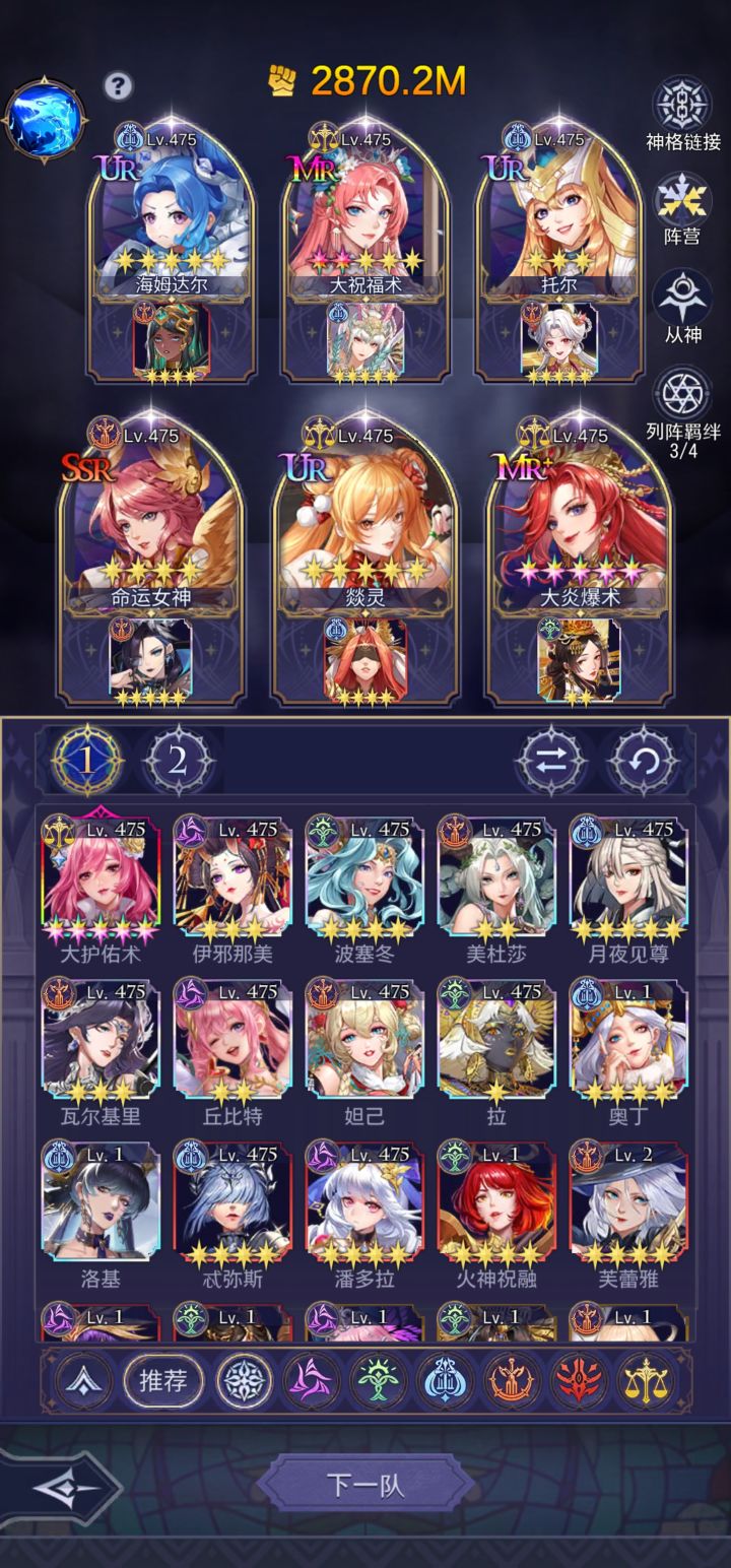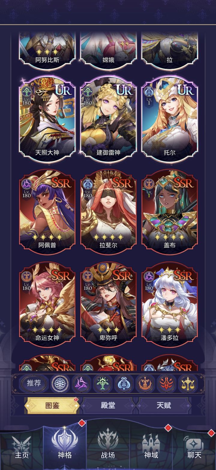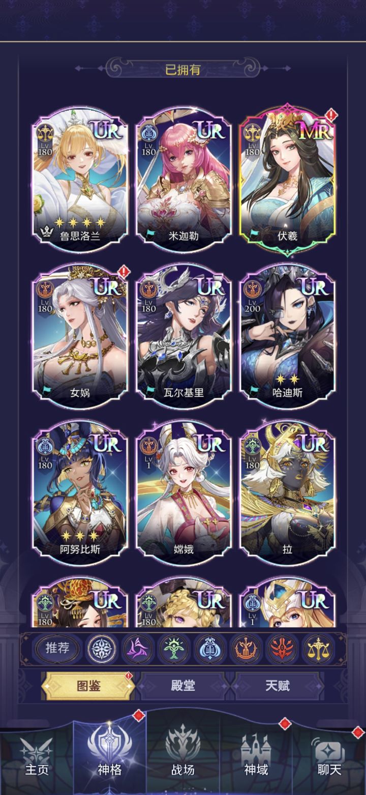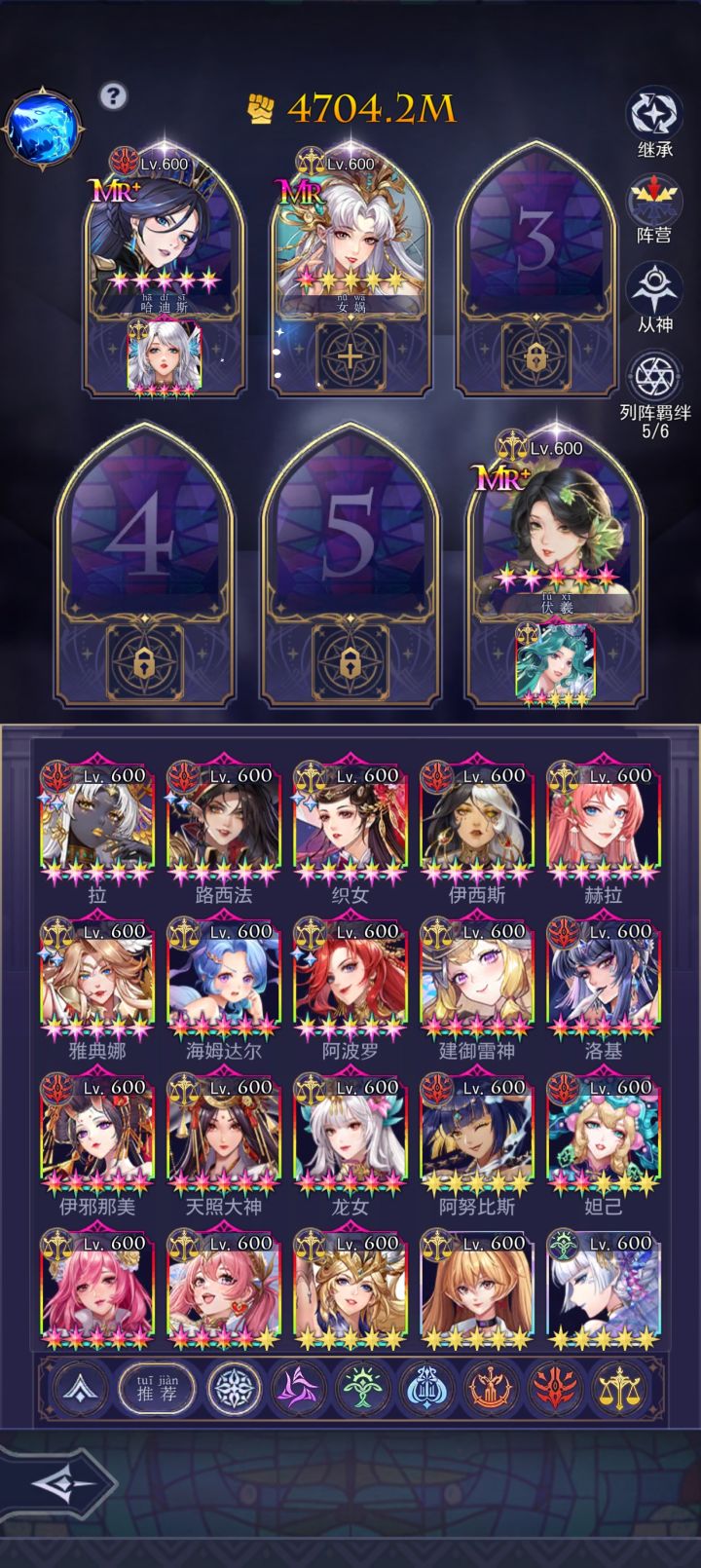 可以先看图,对比我第一个攻略贴的进度。目前感觉良好,pve上哈迪斯,pvp换三星阿努比斯,这玩意儿是阵营抽卡给我歪的,气死偶咧!好在pvp阿努比斯配合莉莉丝从神强度还是挺高的,毕竟是单体,暴击直接稳定减员对面一个,然后高星护盾也够,能抗能打。然后目前所有抽奖券已经全军覆没,因为本人很喜欢伏羲,全都给梭哈了,mr碎片已经能一星,ur反倒是卡住了,因为还抽了米迦勒,阵营还抽了一个哈迪斯凑二星。