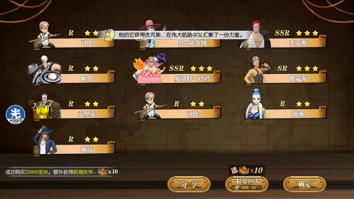 这两个如何,我最喜欢的白胡子老爹,因为白胡子老爹入坑,昨天晚上单抽出的这两个,三十多次单抽,一直没有SSR,但昨晚转运了,三次单抽两个,还有白胡子老爹,哈哈哈