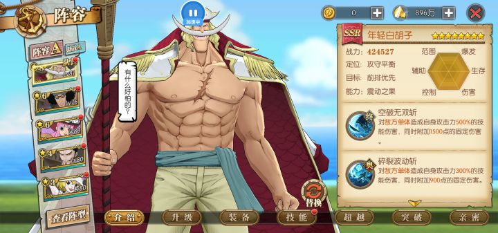 抽卡里面的卷也可以平时获得,不用氪金什么的,可以做一个真正平民玩家也很强的游戏人物,老卡里面的12太保也要选出来加强了,感觉可以上一波天梯阵容,不过感觉可以多出几个有超奥义的角色,感觉更帅,不过2.0也要出来了,新路飞也要出超奥义,技能简介视频都看完了,真的很期待,希望以后可以做得更帅气的角色出来抽!!!