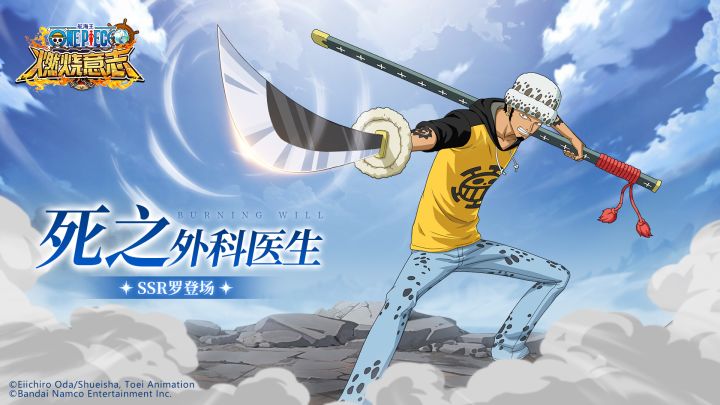 他出生在已经亡国的“白色城镇”弗雷凡斯,自幼患上了白铅病生命所剩无几,但由于克拉松给他吃下“手术之果”才得以存活。他成立了“红心海盗团”,并发誓为已故的恩人复仇——没错,他就是特拉加法尔·罗。在游戏中,SSR罗将利用他手术之果的能力为同队的队友提供增益效果,不论是在队友发起进攻时提供伤害加成还是在敌方猛攻时保护队友,罗都能够轻松驾驭。让我们一起期待他的到来吧~