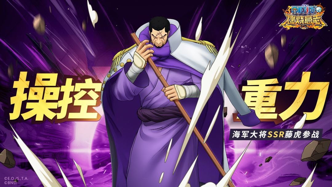 他是海军总部的大将,他富有极强正义感,他与绿牛齐名为“实力超强的怪物”——他就是藤虎。他穿着淡紫的浴衣和披风,绑着暗紫色腰带,脚上穿着传统的木屐,是一位和服扮身的剑客!游戏内的SSR藤虎也会众望所归,“重重之果”、“新任大将”等天赋的效果将发挥出特殊作用,海军阵营SSR藤虎的加入,作为实力超强的海军大将,他的“重力刀”、“重力操控”等技能会给对手造成怎样的伤害?让我们一起期待他的到来吧!