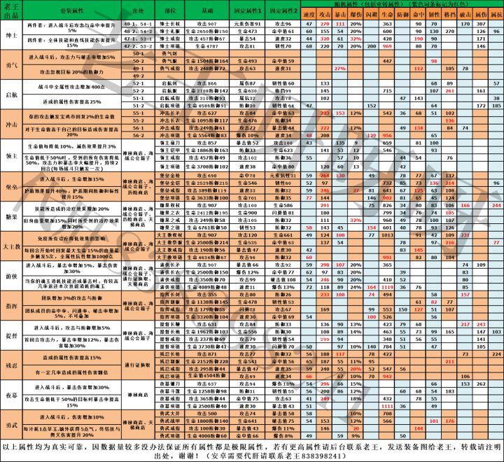 大家好,我是老王呀呀呀!自从重铸开启以来,大佬们的重铸石都是一直在洗刷刷的状态,但是重铸新属性出来了,怎么判断是不是满属性了,这里老王花了好久好久的功夫,看遍了东西南北海还有新世界跟新星天梯排行榜大佬的装备,最终整理出来了这个表格,也就是各个装备的最高属性图,当然有的大佬不肯展示自己的阵容老王这里就录不到数据了。表格的数据如果有出入请各位海米联系老王,并将更高的属性截图发送给老王,方便老王进行