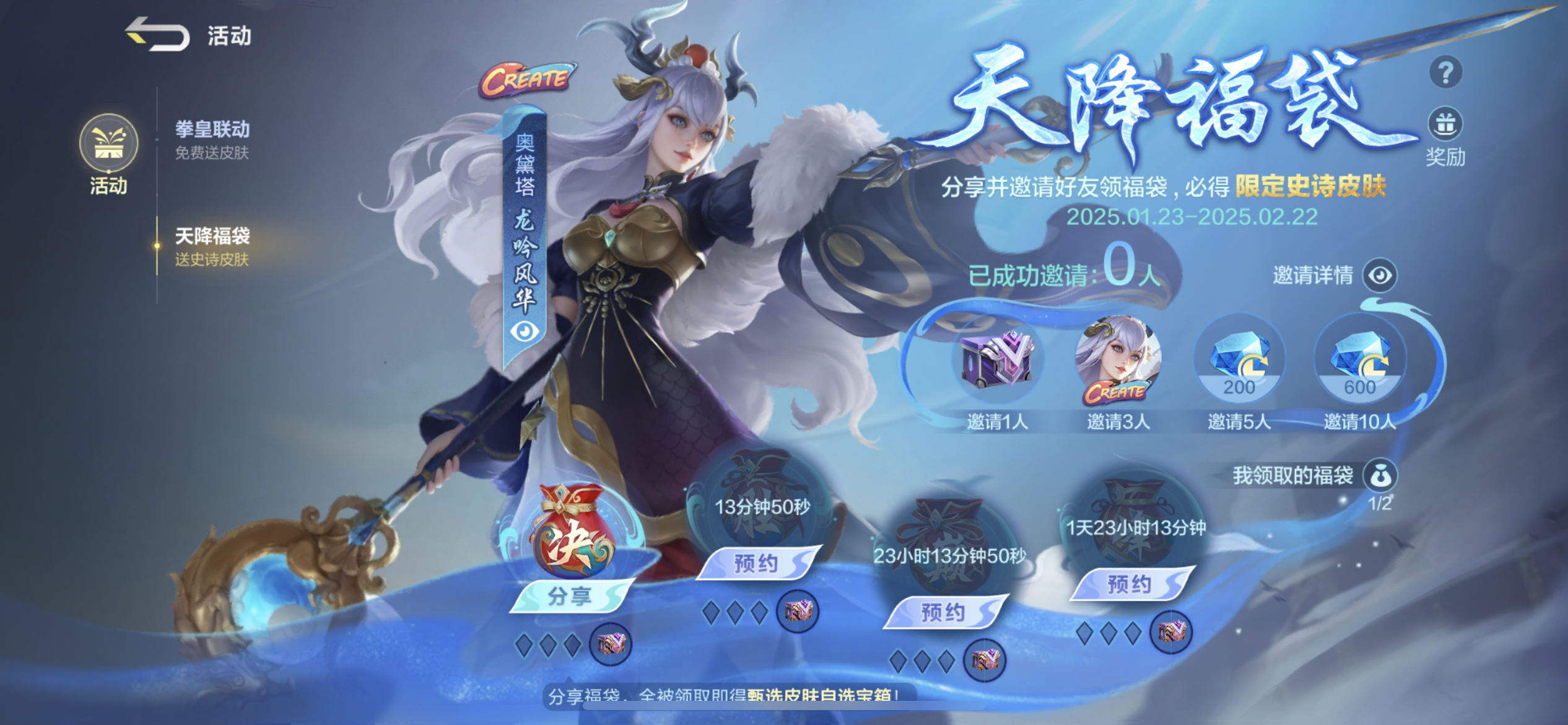 《决胜巅峰》天降福袋活动来袭!快领取我送你的福袋,免费领限时甄选皮肤大奖 :https://df.moonton.com/luckybag?code=444VXKYC83b4&from_source=game_wx