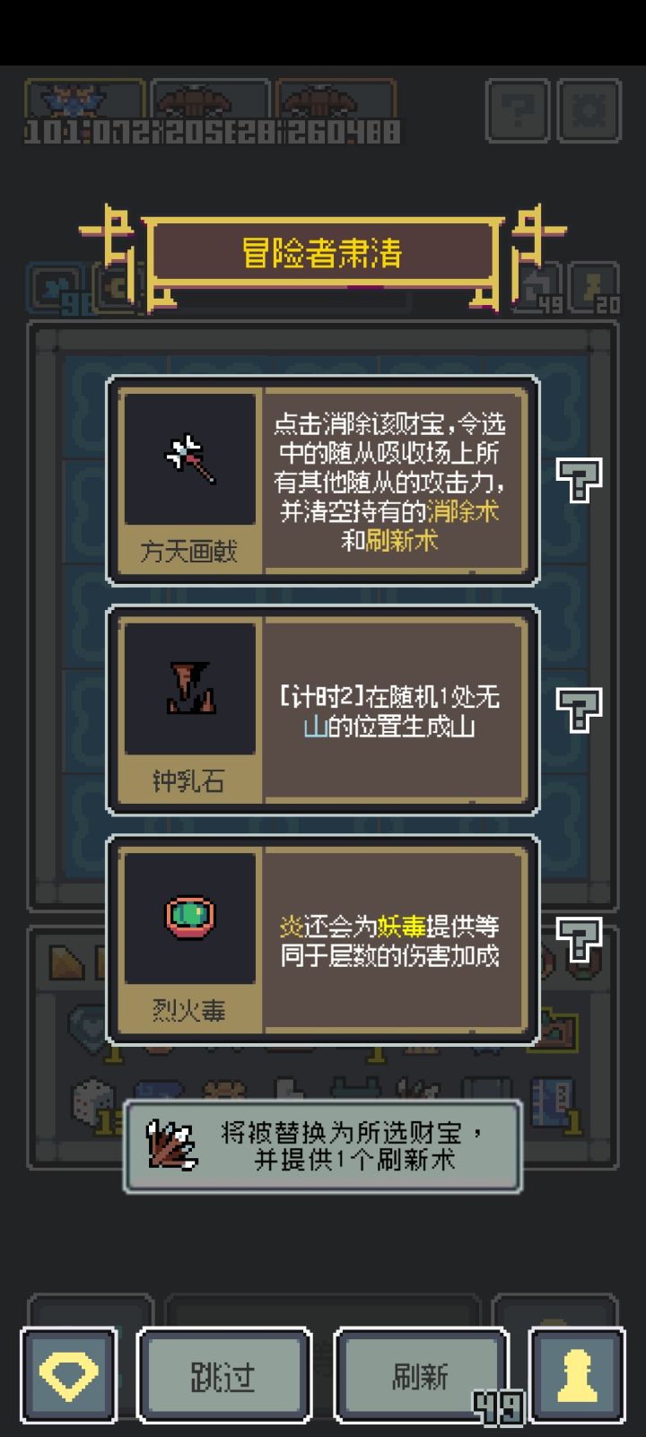 无脑选龙类、闪电类,构筑类生物,龙可以配合遗物拿加速,构筑的一部分自己会消除不怕卡格子,配合闪电的后期分分钟刷到99层,前期三大陷阱:蝙蝠 史莱姆 魔手,还有鱼人地精蛙人也不太建议选,很多关卡对冲击群攻有削弱,中期有遗物可以选波刃鸟,暗影弹,后期有夜亲王也一定要选,配合夜族和加速每一回合都能打全局几百点伤害,最后是大遗物,没错就是比普通遗物多一个黄色光环的那个,要在开局之前首页左上角选戒指才能刷新