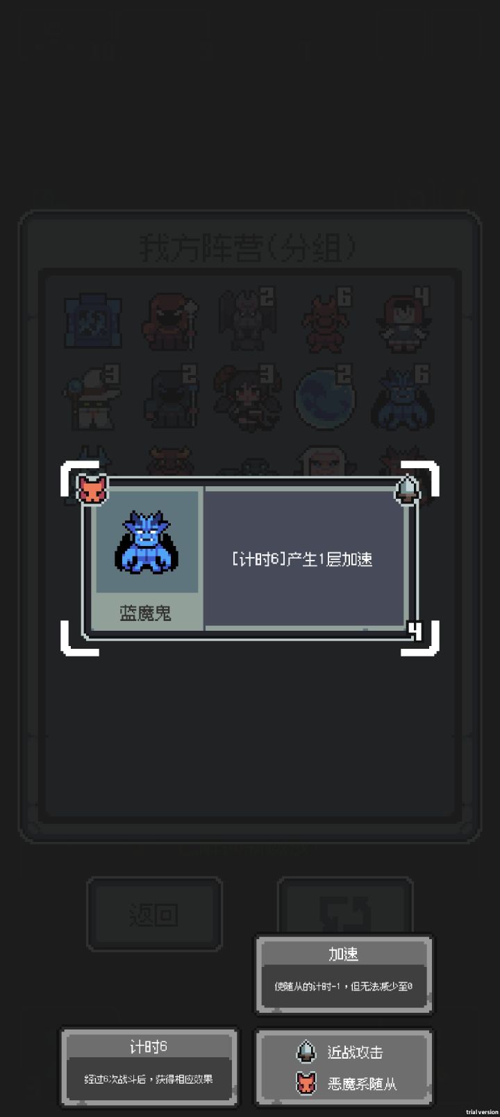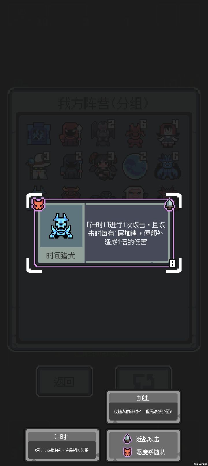 【蓝魔鬼】★★★★★核心,遇到就拿,多多益善,数量上来后【蓝魔鬼】加速【蓝魔鬼】直接左脚踩右脚起飞~【时间猎犬】★★★★★加速流派的输出头子,可以辅助拿【古老尖牙】这个加强猎犬的神器,每一层加速额外一倍,概念神一般,再加上【魔力灌注】这种叠基础攻击力的神器,直接上天,就是可惜是近战。【多头蛇】★★★★「计时」短,攻击次数多,配上基础攻击力的加强简直爽飞,就是