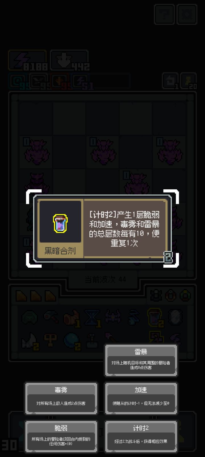 基本上可以称得上是最稳定可以通关的流派了,牌简单,伤害高,拿了4个孟婆就挂机就行,只需要两个宝物四张牌,前期潜藏类牌用于过渡,中间拿无常,判官配合煞推关,慢慢删掉多余的即可。唯一缺点是中期伤害太猛没啥机会删牌。#魔王终局全面入侵
