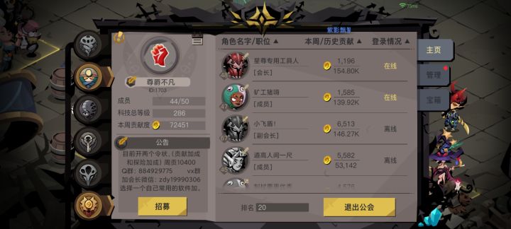 287级公会招人,探险和贡献加成双令状,周贡10400来的加q群884929775