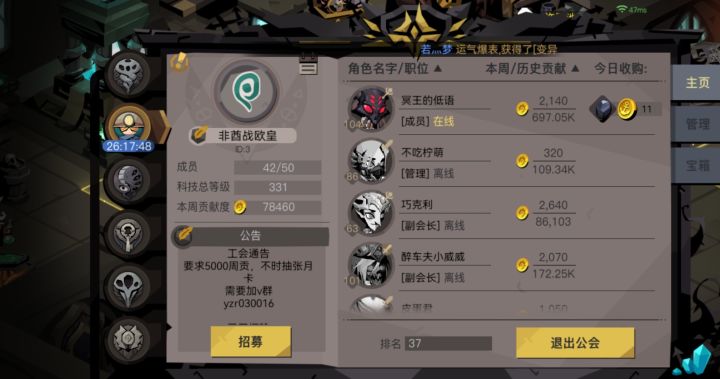 330级公会招人,有来的私我,开探险周贡5000,欢迎萌新大佬入住