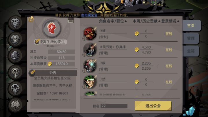 新图在即,192级公会一个坑,周贡11120,主星痕2个7级及以上,群内海量叔叔伯伯和你探讨人生,有意者私