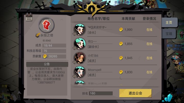 养老工会,不强制钻石贡献,每天任务 boss 金币许愿 完成就OK,贡献看得过去就行欢迎各位收菜养老玩家