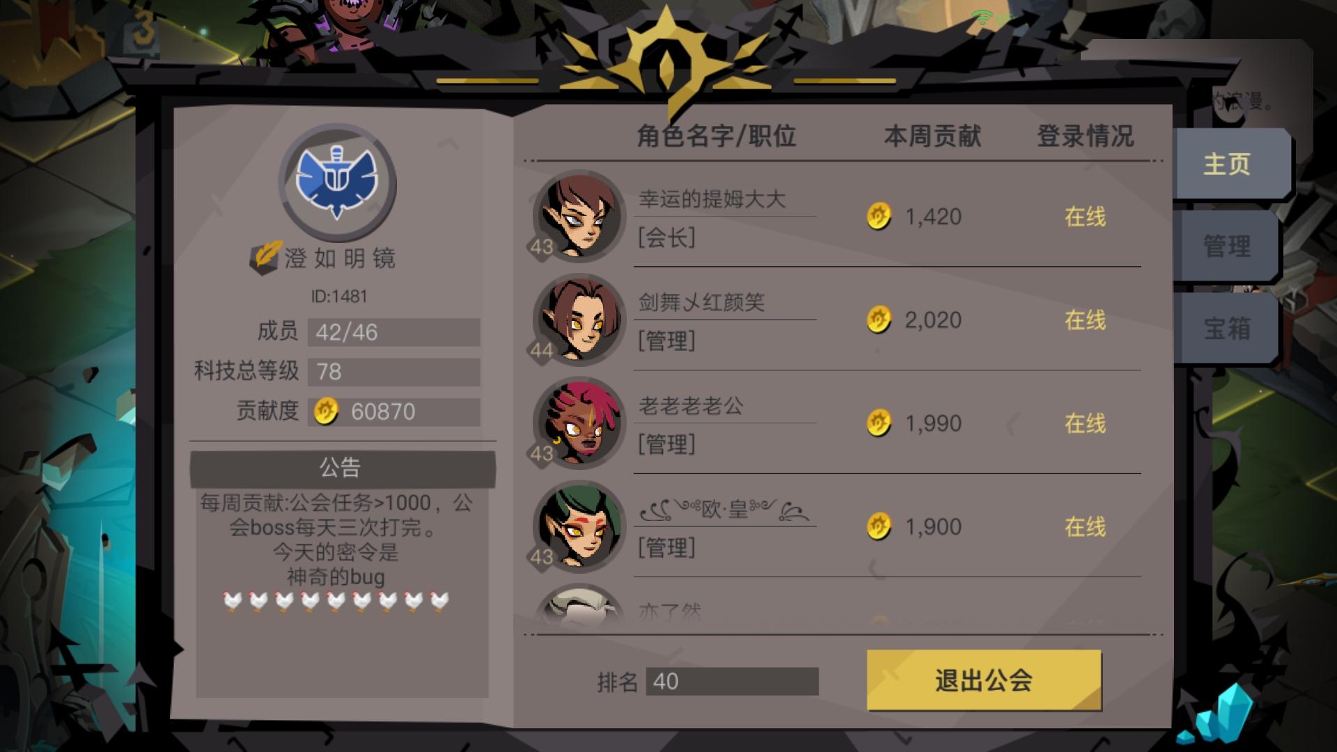 这版本很奇怪,剑盾卡在沙眼,大剑站撸猴子免费送货到家,法师天天组3法互肛,唯一的乐趣竟然是聊天吹🐮公会ID1481,目前4个坑,要求每周千贡,其他无所谓啦,反正爱玩的天天不刷240贡献就感觉亏了,会里妹子一堆哦