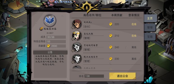 公会ID8888公会情况见图!截图时间2019.7.21周日晚联系方式游戏ID23708675 希望公会能稳定的发展,希望大家都在。欢迎还喜欢贪婪洞窟的小伙伴常驻。祝大家游戏愉快!信息更新时间2019.7.21
