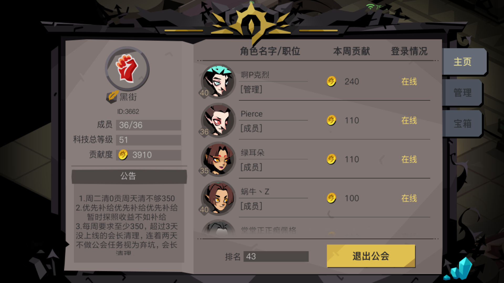 每周450贡献,无其他要求公会ID3807,直接申请即可,看到会批