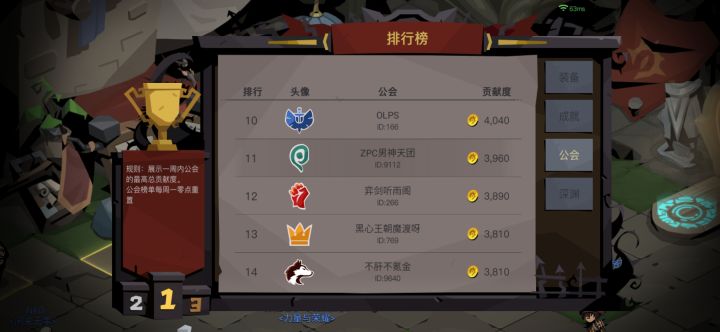 54级工会 14 25 15 以后只升级探照灯 现在招收 生活能自理的大剑 剑盾朋友 以后一起发展 现有1空位 工会要求每周贡献770 每天11点之前 完成任务 有兴趣的朋友 可以联系在下 扣扣 690201641
