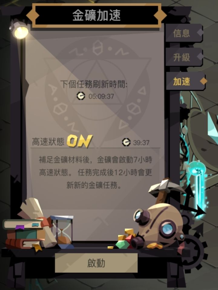 每一次加速矿要12小时,理论上一天能加速两次,但是不可能每一次都准时,所以加速矿的时间一天会比一天更晚,我希望把加速矿的冷却时间缩短一点,总时间为11小时45分或是11小时30分,这样规律作息者更能有效率的加速矿。以我本身为例子,我在早上7点与晚上7点的时候加速矿,但是我有时提早上线矿还在冷却,有时晚上线10分钟代表明天要早上7点10分才能加速矿,大概一个礼拜后变成早上9点才能加速矿,为了规律性