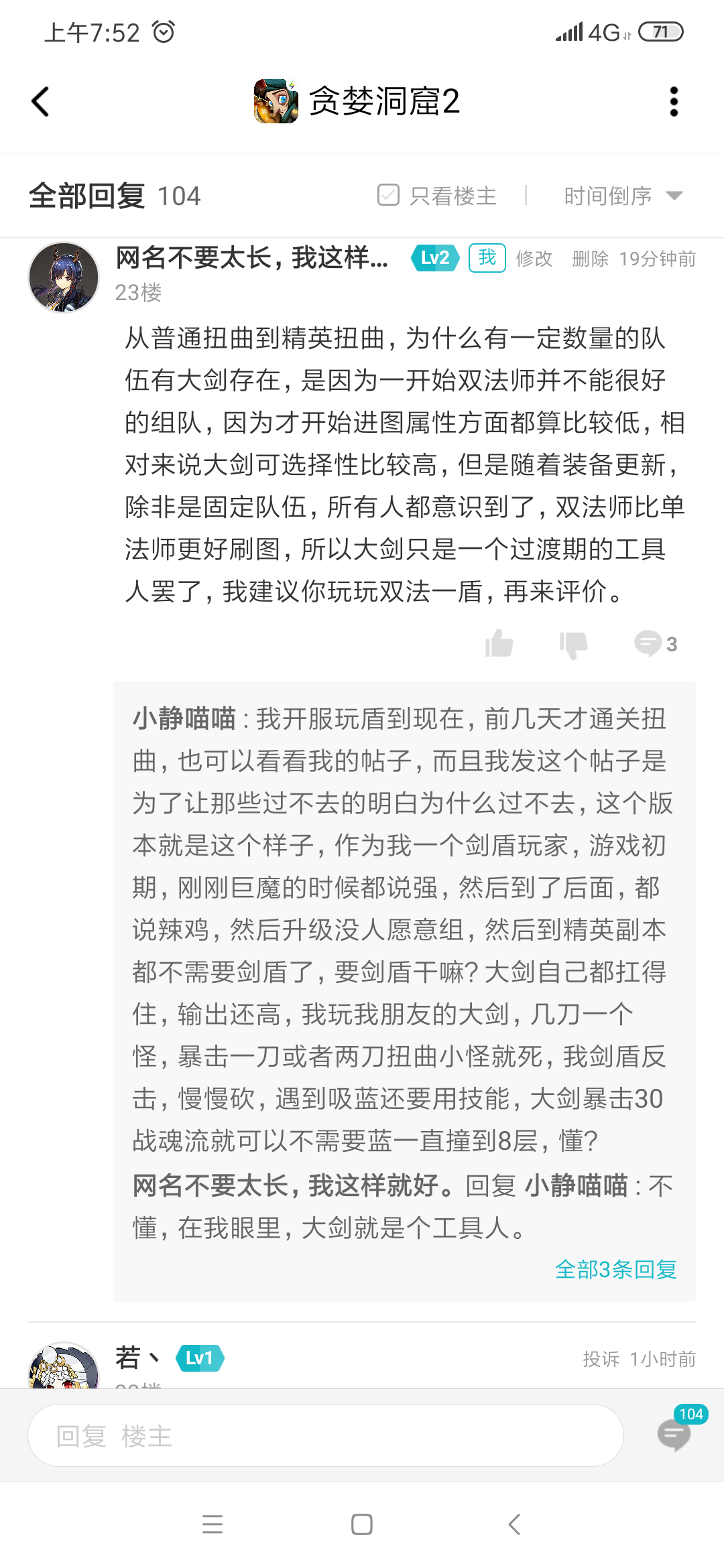 贪婪洞窟2我实在是肝不下去了 剑盾不氪金是真的没办法玩 1.2的光我连扭曲3层都不敢下 肝了十几天 就出2件盾能用的 每天一层摸 摸的都快吐了。星痕每天5次总是1~2徘徊 十几天一点提升都没有。说实话我以前玩其他游戏都没有在这个游戏上浪费的时间多。实在是玩不下去了,每天就收收菜吧!